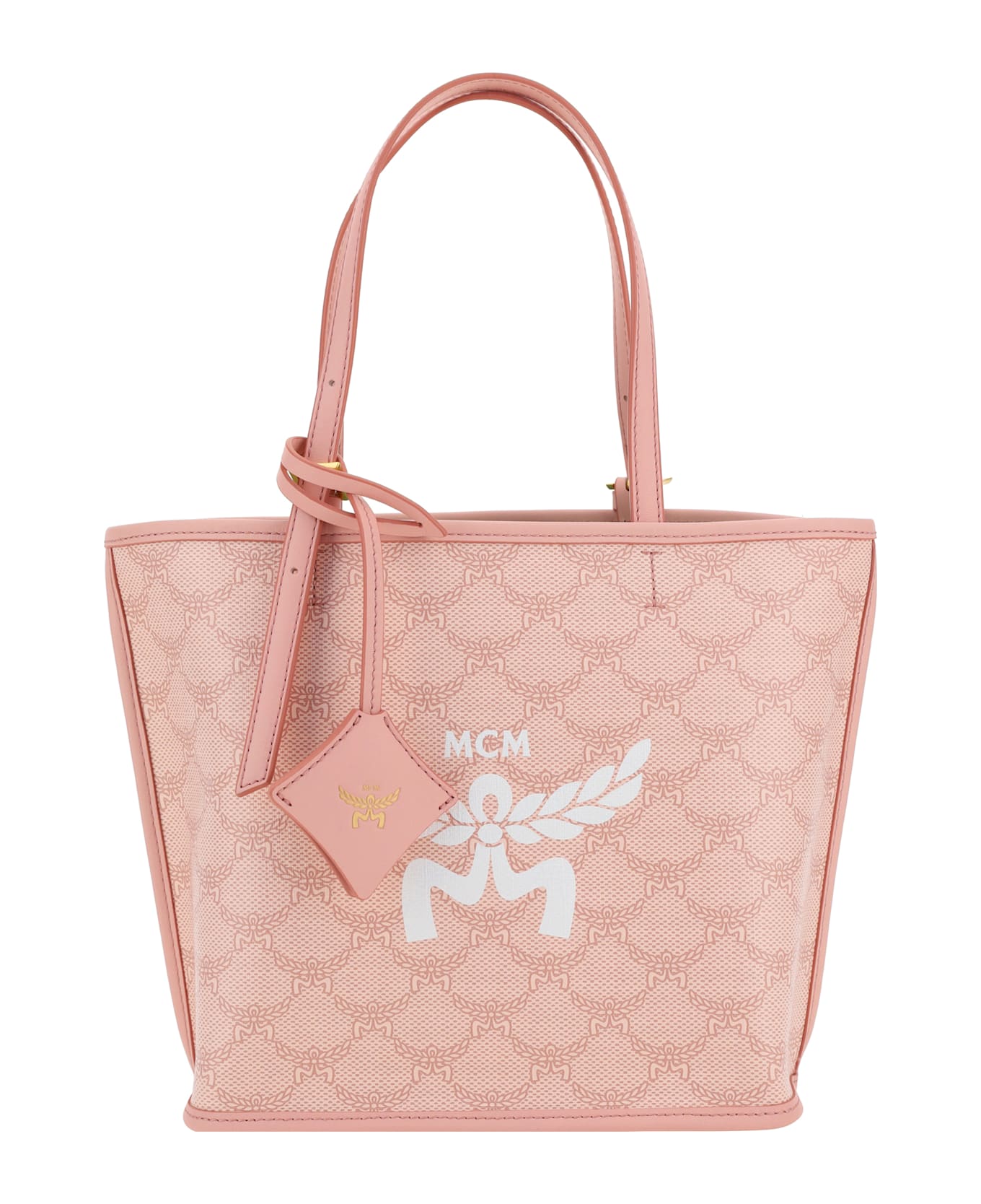 Laurel shoulder bag by mcm, two flat top handles, single interior compartment, iconic all-over contrasting brand logo, brand monogram on front, interior pouch Composition: 72% % Polyurethane, 16% % Cotton, 12% % Linen