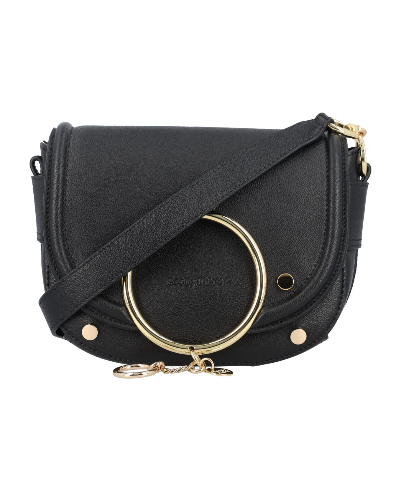Small Grain Cowhide Mara Cross-body Bag By See By Chloé. Featuring: Flap Magnetic Closure Oversized Ring With The Signature See By Chloé Medal At Front Adjustable And Removable Shoulder Strap Roomy Main Compartment Flat Card Slot Inside Cotton Canvas Lining Gold-tone Metal Finish Height: 18 Cm Width: 22 Cm Depth: 9 Cm