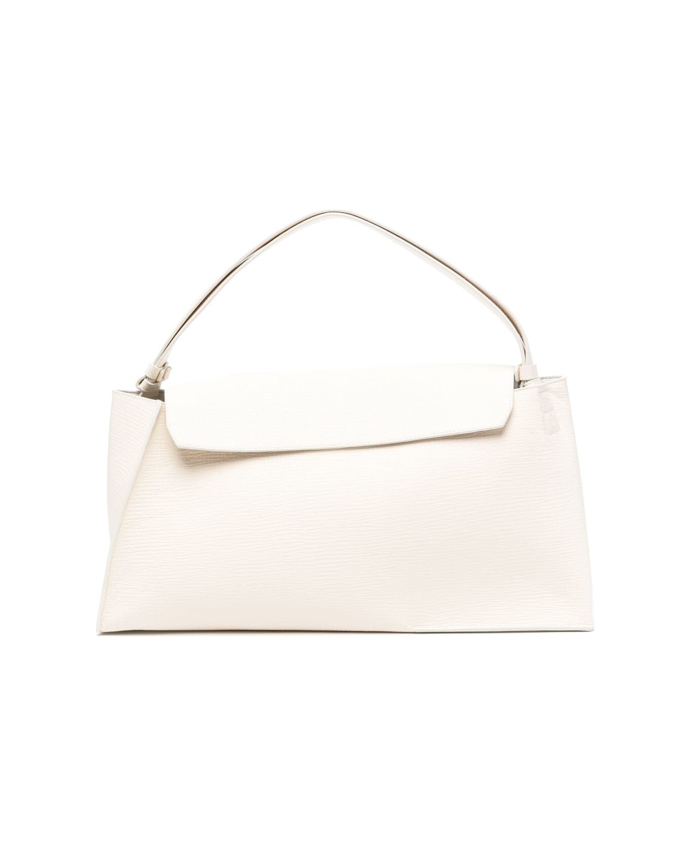 ecru calf leather grained texture foldover top with magnetic fastening adjustable shoulder strap debossed logo to the front main compartment internal slip pocket full lining