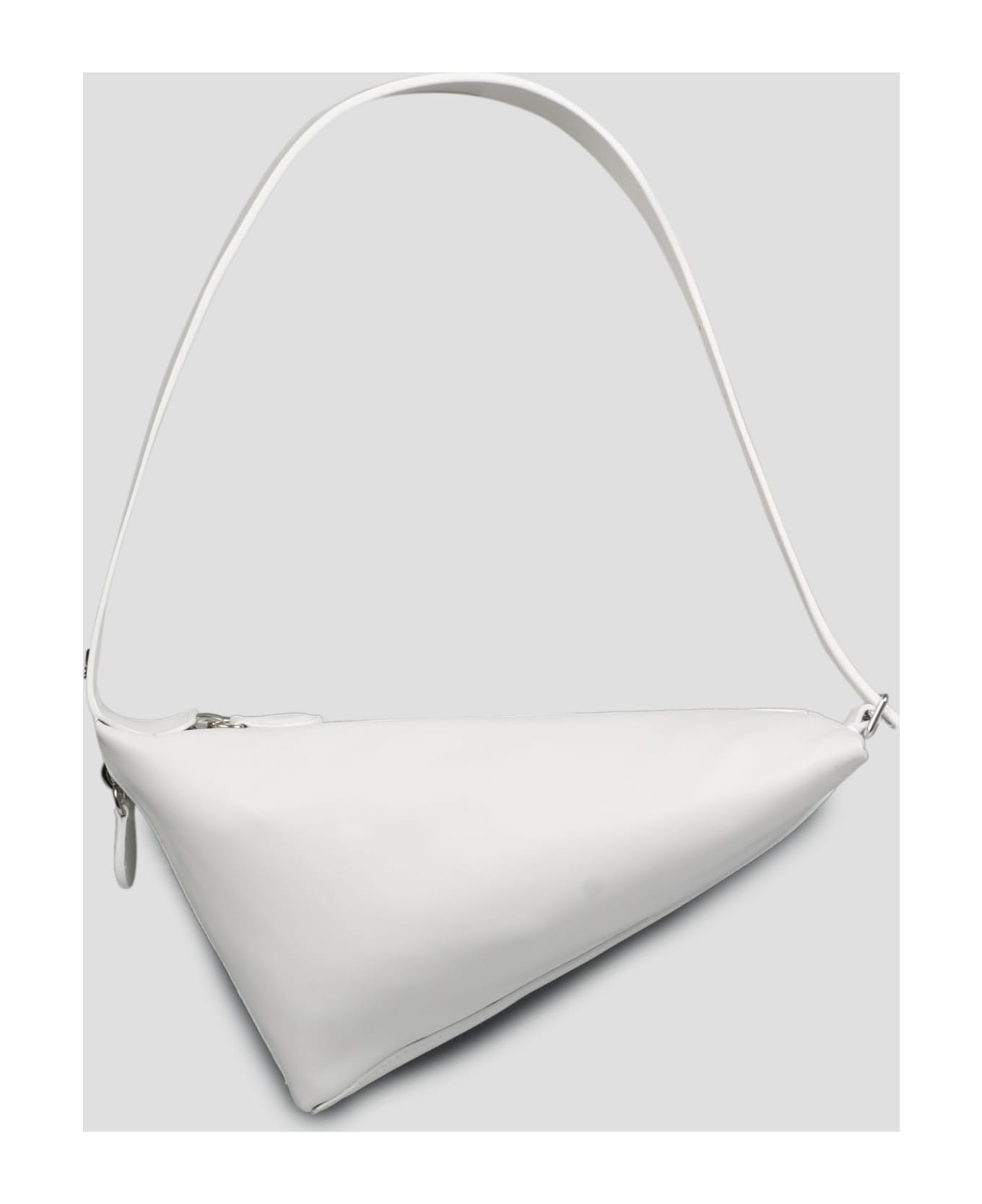 The One bag by Courrèges, in smooth leather. - SS23 - Triangular shape - Double zip - Adjustable handle (drop: 27cm) - w: 21cm, h: 15cm, d: 14cm - Made in Italy - 100% Cowhide Leather