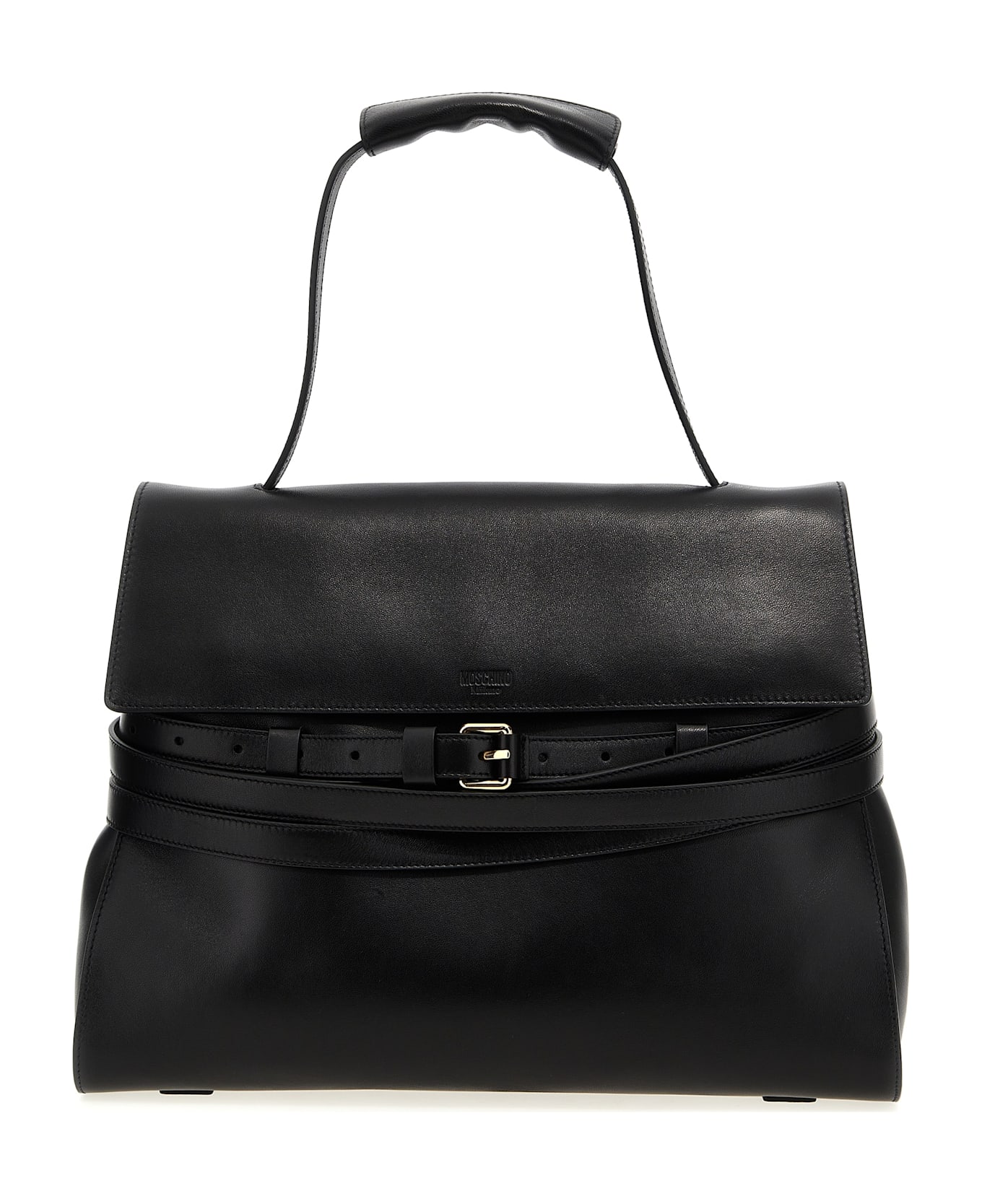 'Tie Me' nappa shoulder bag with front belt detail, front embossed logo, fixed handle, magnetic flap closure, adjustable and removable leather shoulder strap. Composition: 100% nappa leather