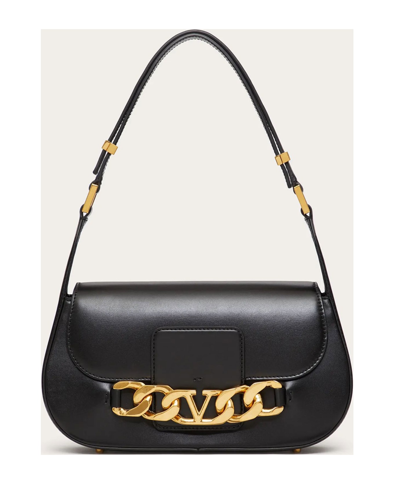 VLogo Chain shoulder bag in black calfskin characterized by a gold-tone metallic chain with VLogo Signature detail. It features adjustable handle, magnetic closure, one main interior compartment and an interior zip pocket. Dimensions: 15x27x8cm