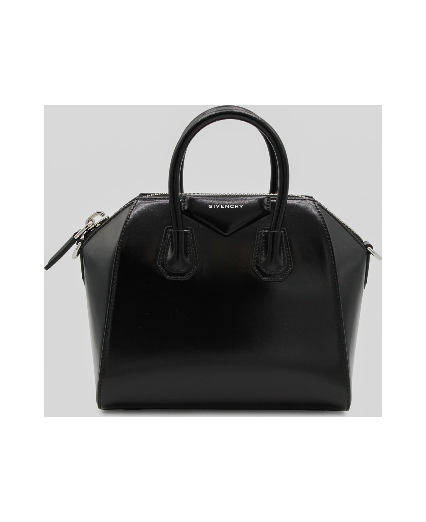 Black leather Antigona top handle bag from Givenchy featuring top handles, zip fastening, inside pocket and frontal logo. Composition: 100% Le