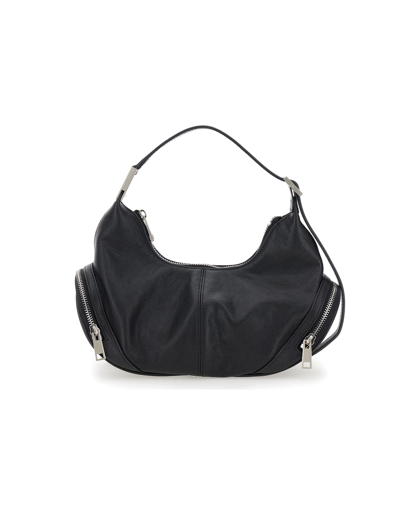 'cargo' Black Hobo Shoulder Bag With Adjustable Shoulder Strap In Leather Woman