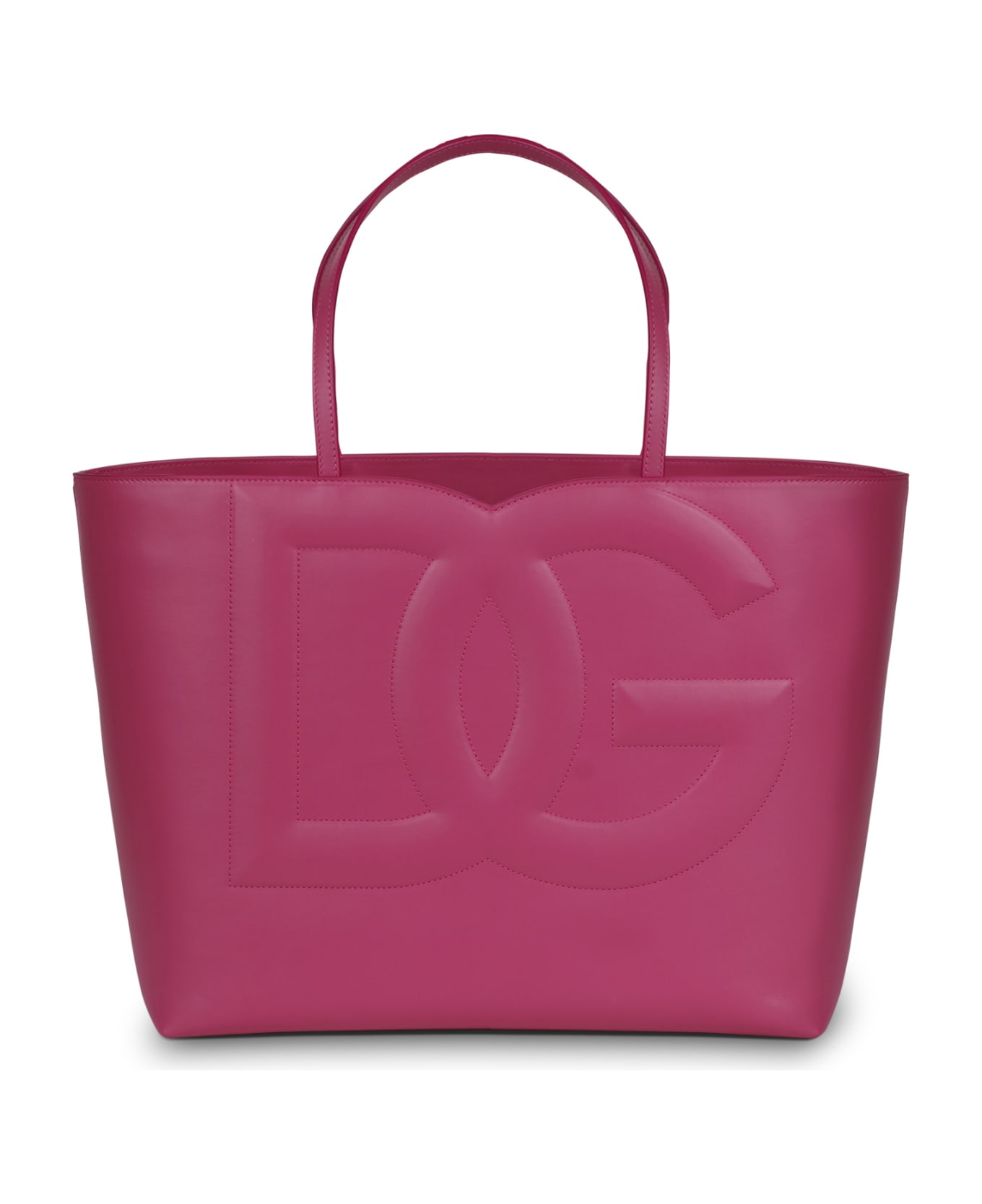 'DG Logo' Medium Shopping Bag in calfskin, two handles in calfskin, lining in printed fabric, quilted 'DG' Logo, inside pocket with zip, by Dolce & Gabbana Composition: Outer:, 100% Calf Leather; Lining:, 90% Polyester, 10% Calf Leather