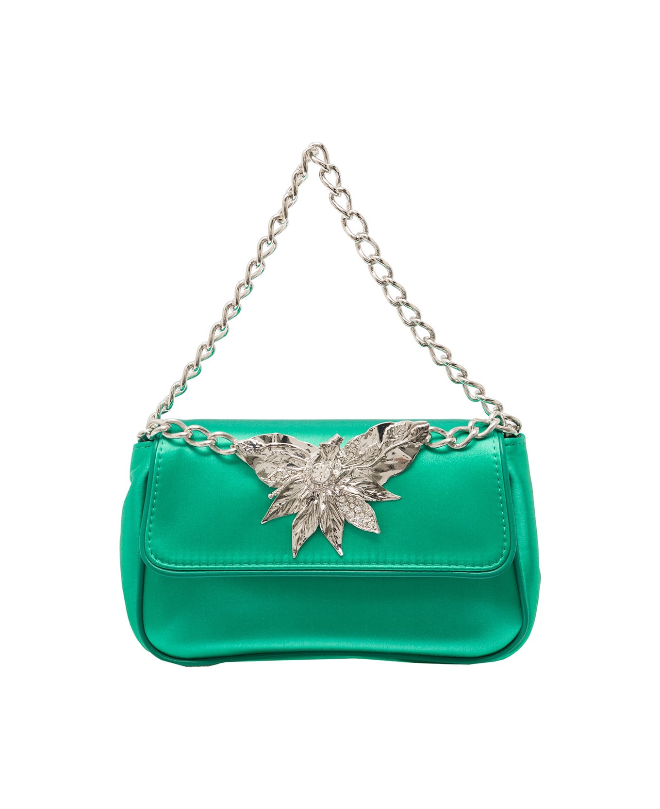Green Crystal Embellished Shoulder Bag In Satin Woman