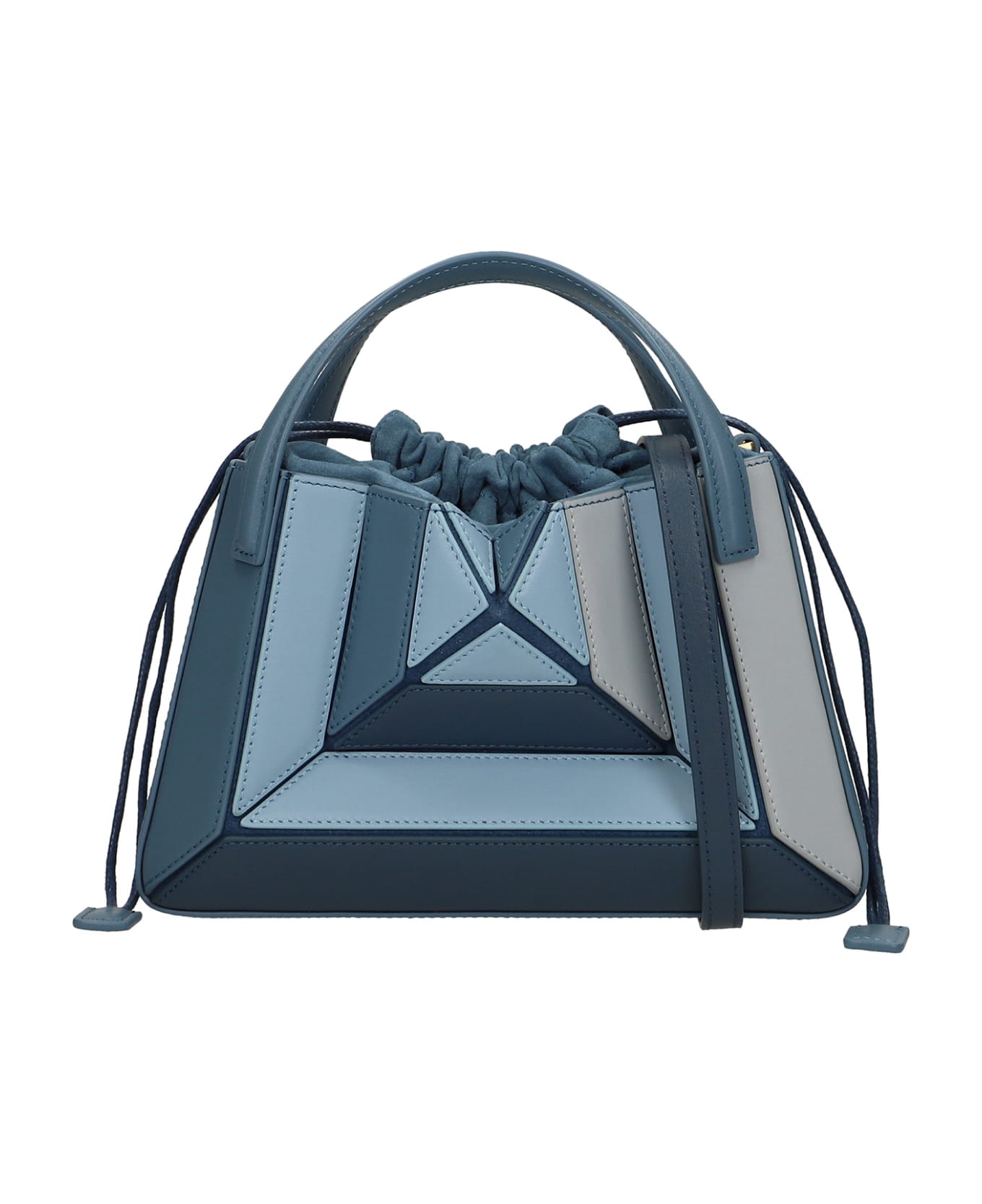 Hand bag in blue leather, double handle, coulisse closure, suede details, shoulder strap, 100% leather, Made in Italy, Height 125 mm, Width 195 mm