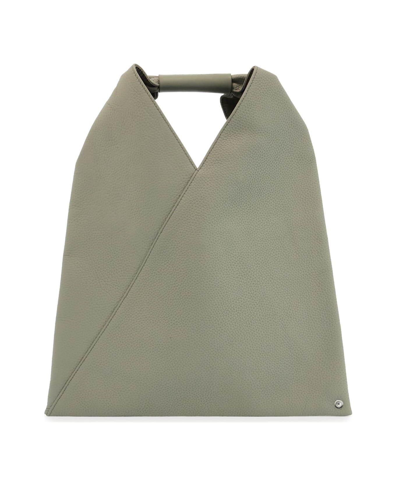MM6 Maison Margiela Japanese Classic small handbag in grained leather with double triangle shape ending in the leather-wrapped top handle with debossed logo. Signature straight white stitch on the back. Press-stud on the lower edges to change the bag shape. Press-stud closure, cotton lining and one inner flat pocket with press-stud closure. Silver-finished metalware. Composition: 100% cow leather