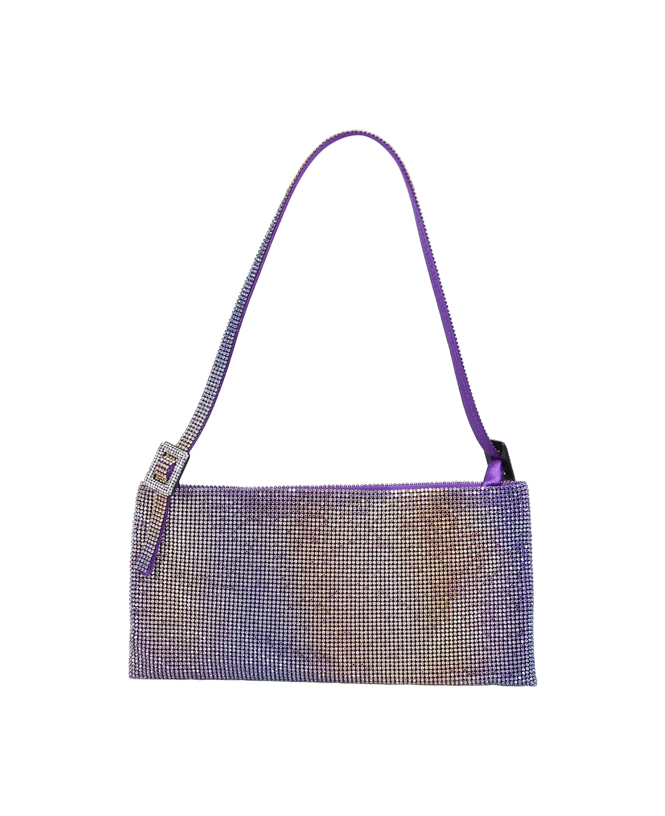 Adjustable shoulder strap. Top zip fastening. Main compartment. Multiple internal slip pockets. Crystal embellishment. Color: Lilac