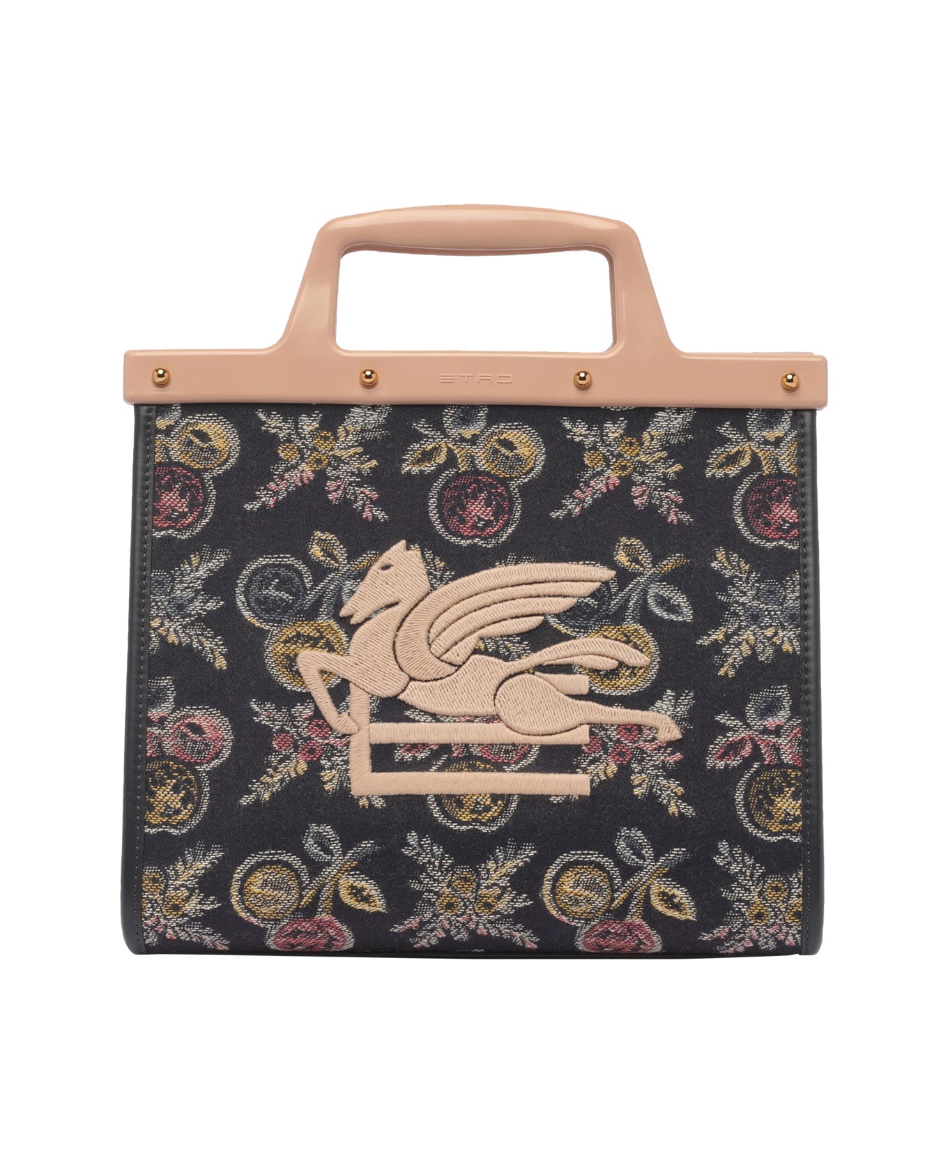 Etro pink Love Trotter shopping bag, one inner zip pocket, double handle, detachable shoulder bag, frontal logo, paisley motiv Composition: 83% Cotton, 14% Viscose, 3% Polyester