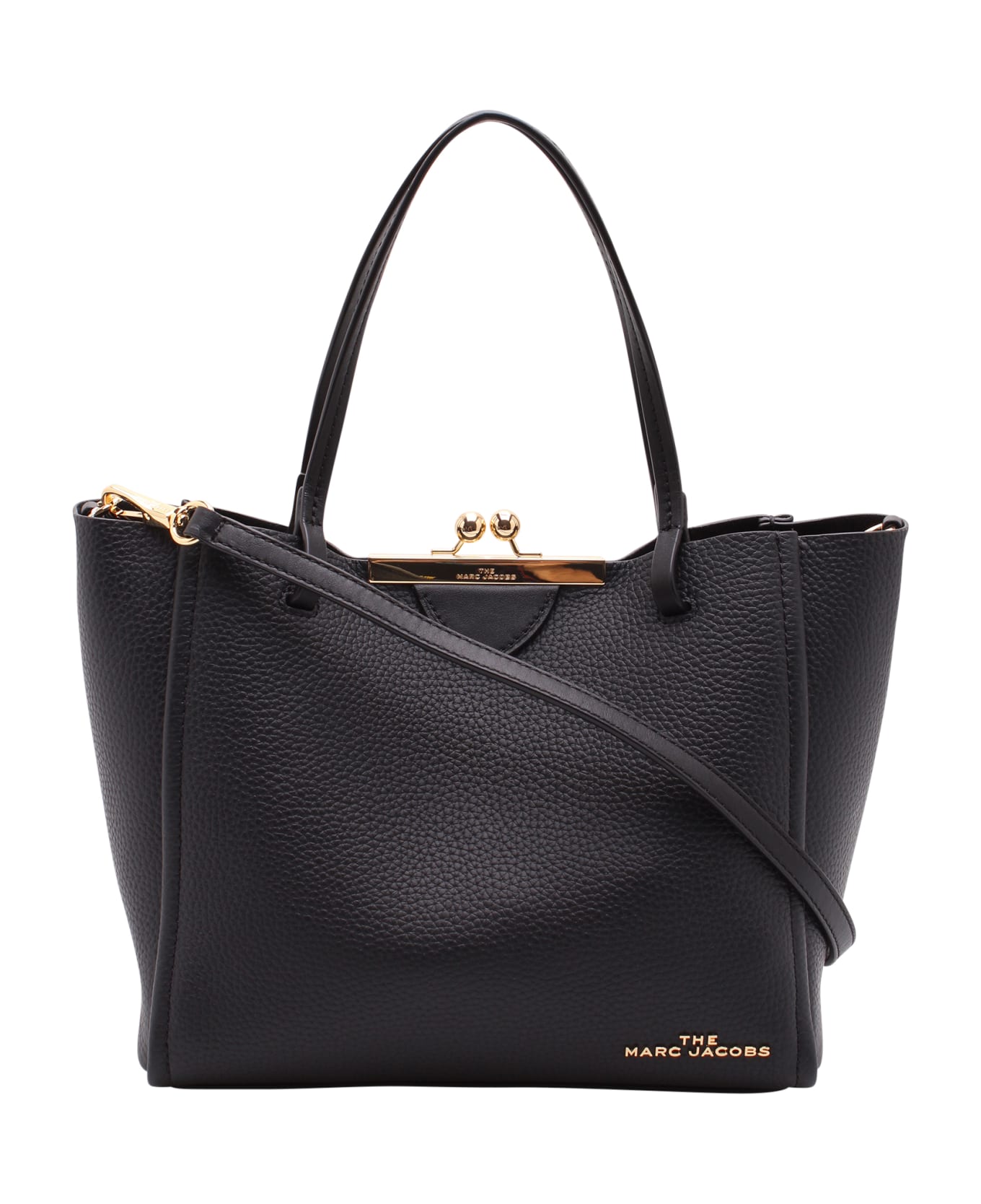 Mini tote bag in black leather and gold details with removable shoulder strap by Marc Jacobs