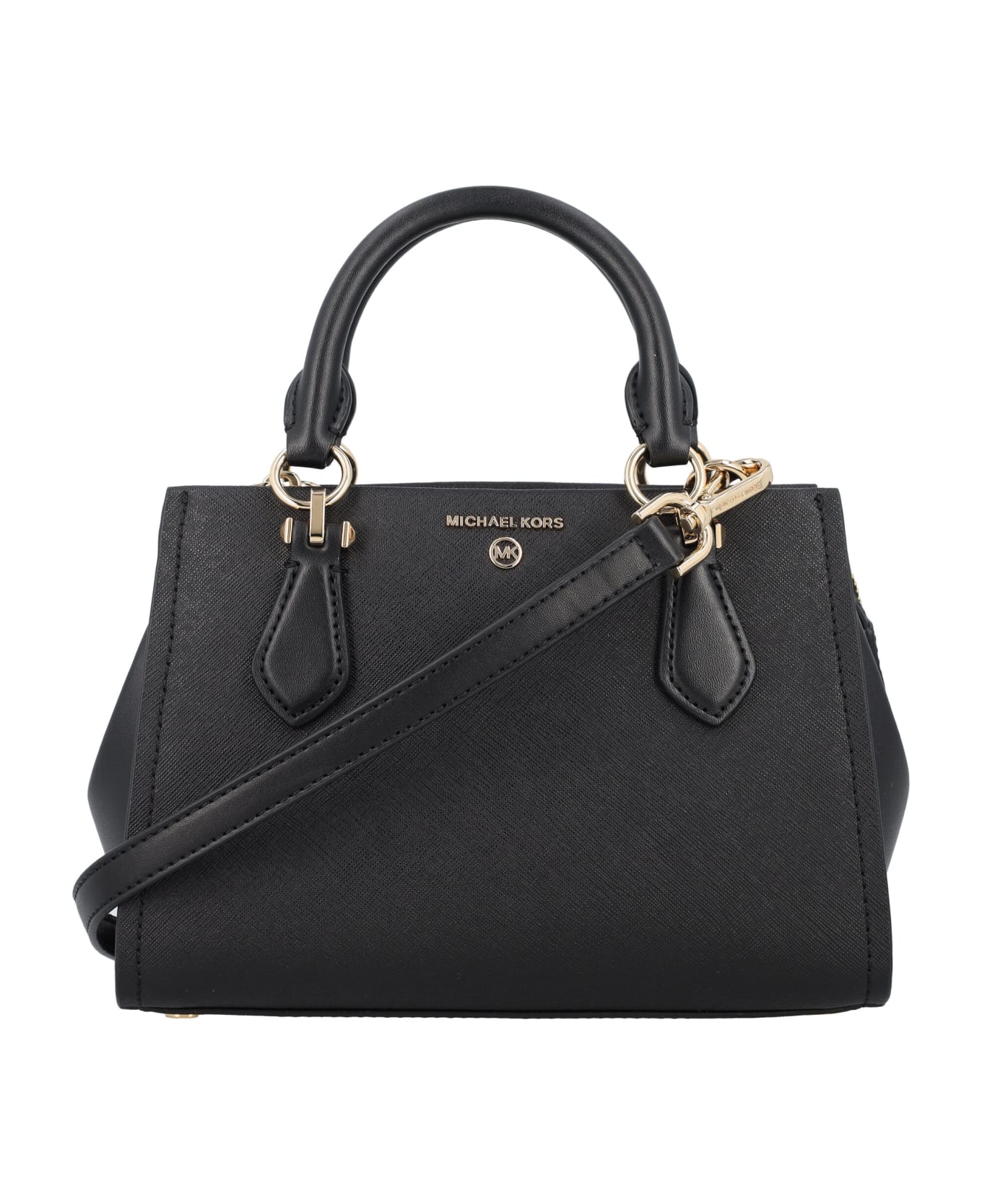 Marilyn Small Saffiano Leather Crossbody Bag By Michael Kors. Featuring: Detachable And Adjustable Shoulder Strap Double Top Handles Zip Closure Embossed Logo At Front Gold-tone Hardware Main Compartment Inner Zip Pocket Inner Slip Pockets Metal Foots Saffiano Leather Height: 16cm Width: 23cm Depth: 10cm