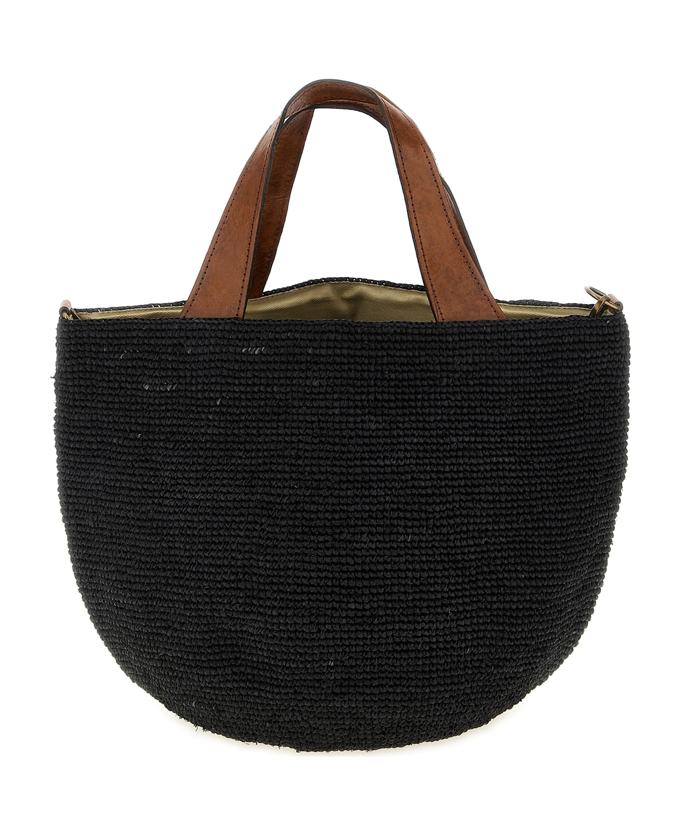 'Mirozy' crocheted raffia handbag with basket design, half inner cotton lining with drawstring, double fixed handle and removable vegetable-tanned zebu leather shoulder strap. Handcrafted product, any imperfections are to be considered characteristics of uniqueness.