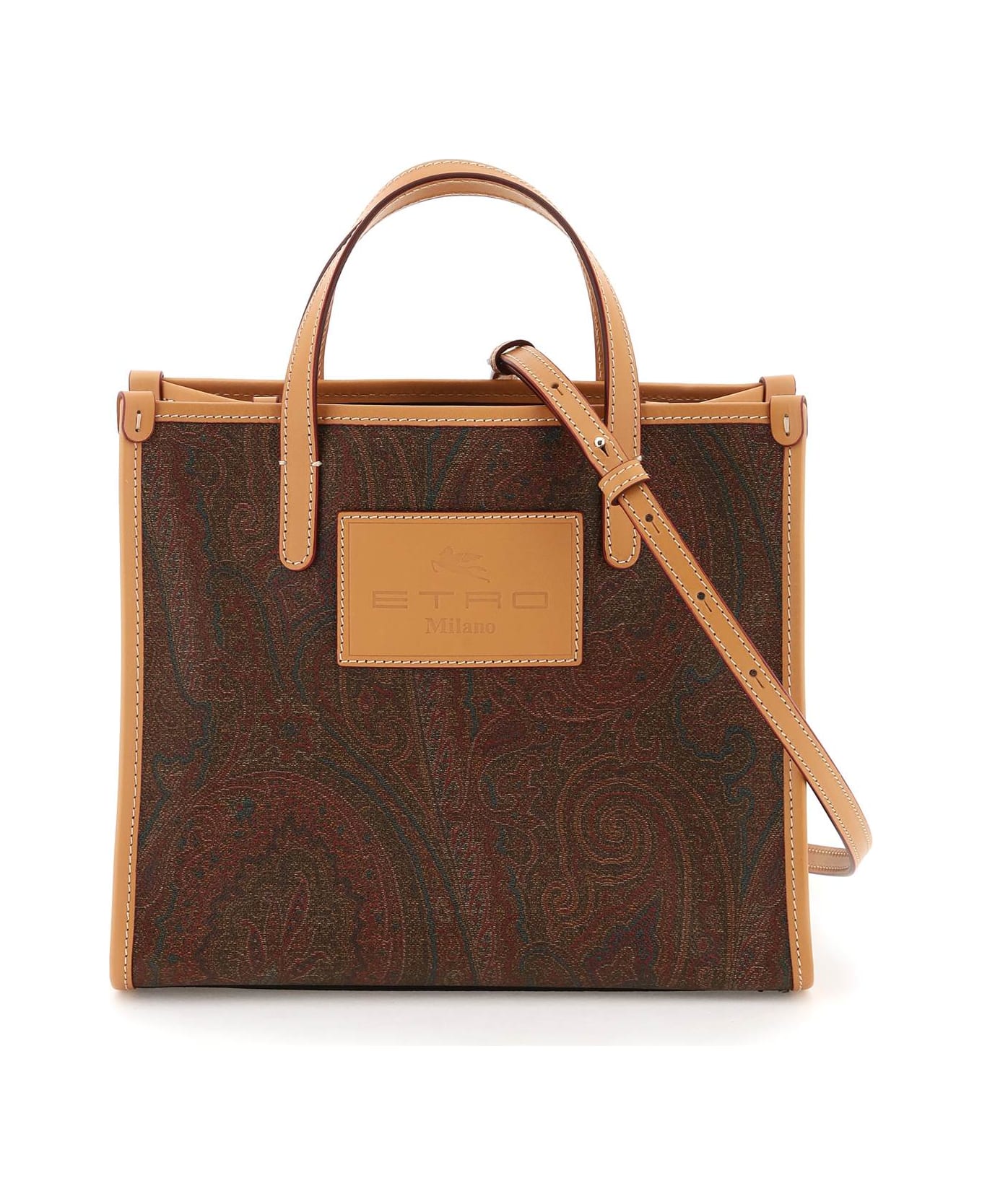 Etro small shopping bag in the iconic Paisley coated canvas with trimmings and double handle in smooth leather. Leather patch with debossed logo applied on front and removable adjustable shoulder strap. Branded fabric lining and one inner flat pocket with zip closure. Palladium-finished metalware. Composition: 76% CO, 24% PL, 100% LH
