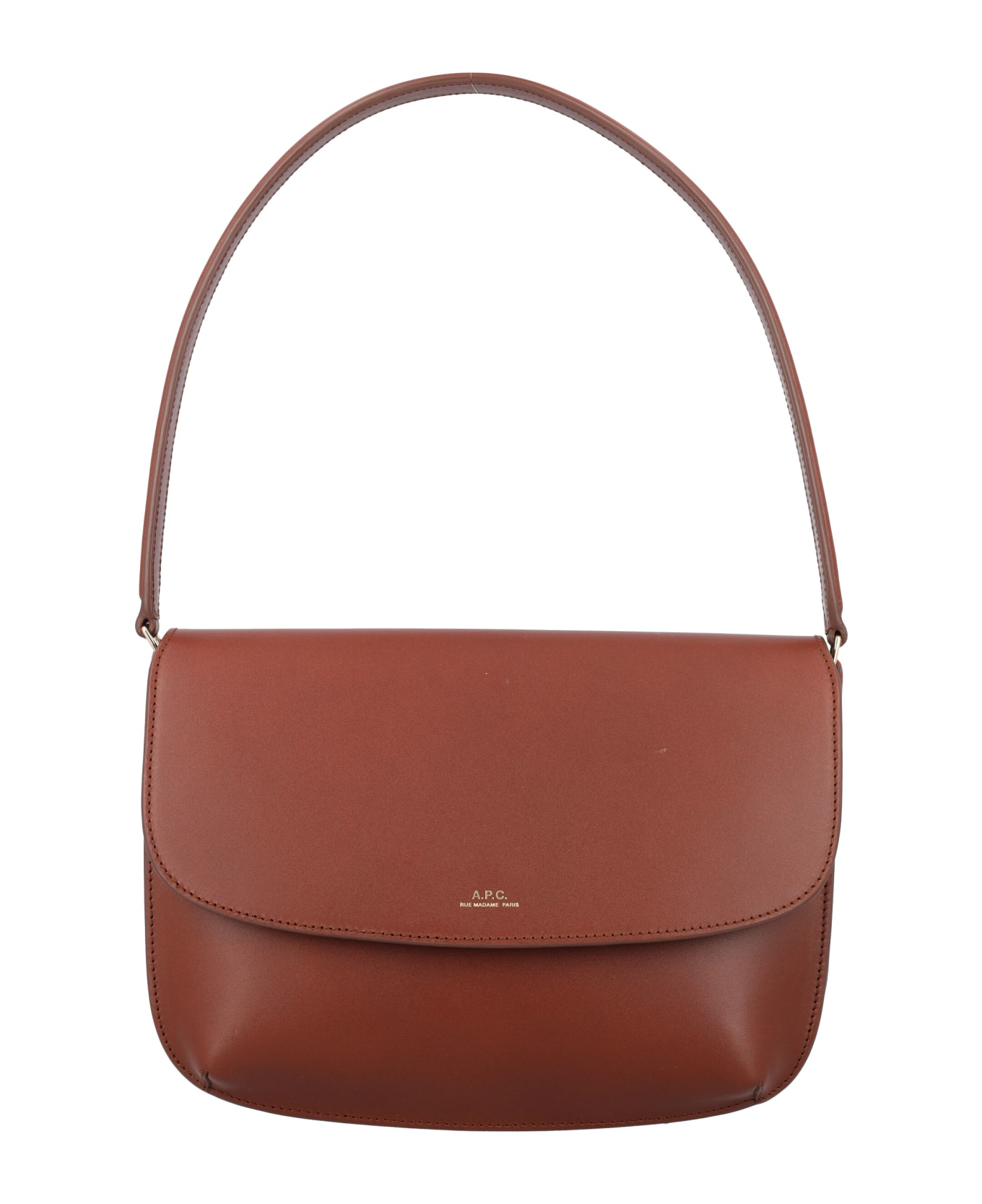 Smooth Cowhide Leather Sarah Shoulder Bag By A. p. c.. Featuring: Magnetic Flap Closure Goldtone "a. p. c. Rue Madame" Logo At Front Convex, Rounded Bottom Corners Two Main Compartment Internal Flat Pocket Cotton Lining Suede Lining Under The Flap Height: 17 Cm Width: 25 Cm Depth: 6,5 Cm