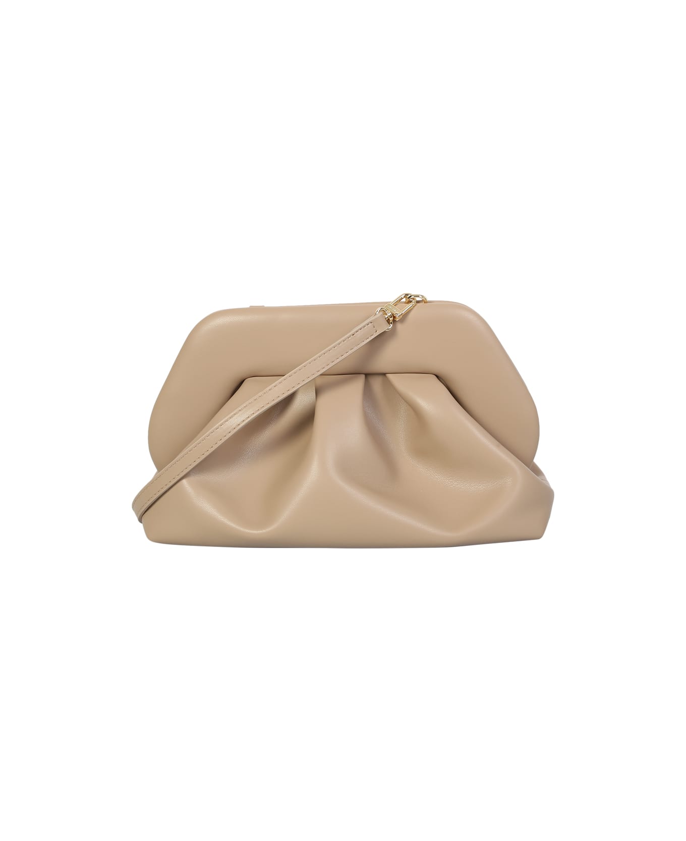 Top magnetic fastening. Main compartment. Internl logo tag. Clutch design. Detachable adjustable shoulder strap. Color: beige