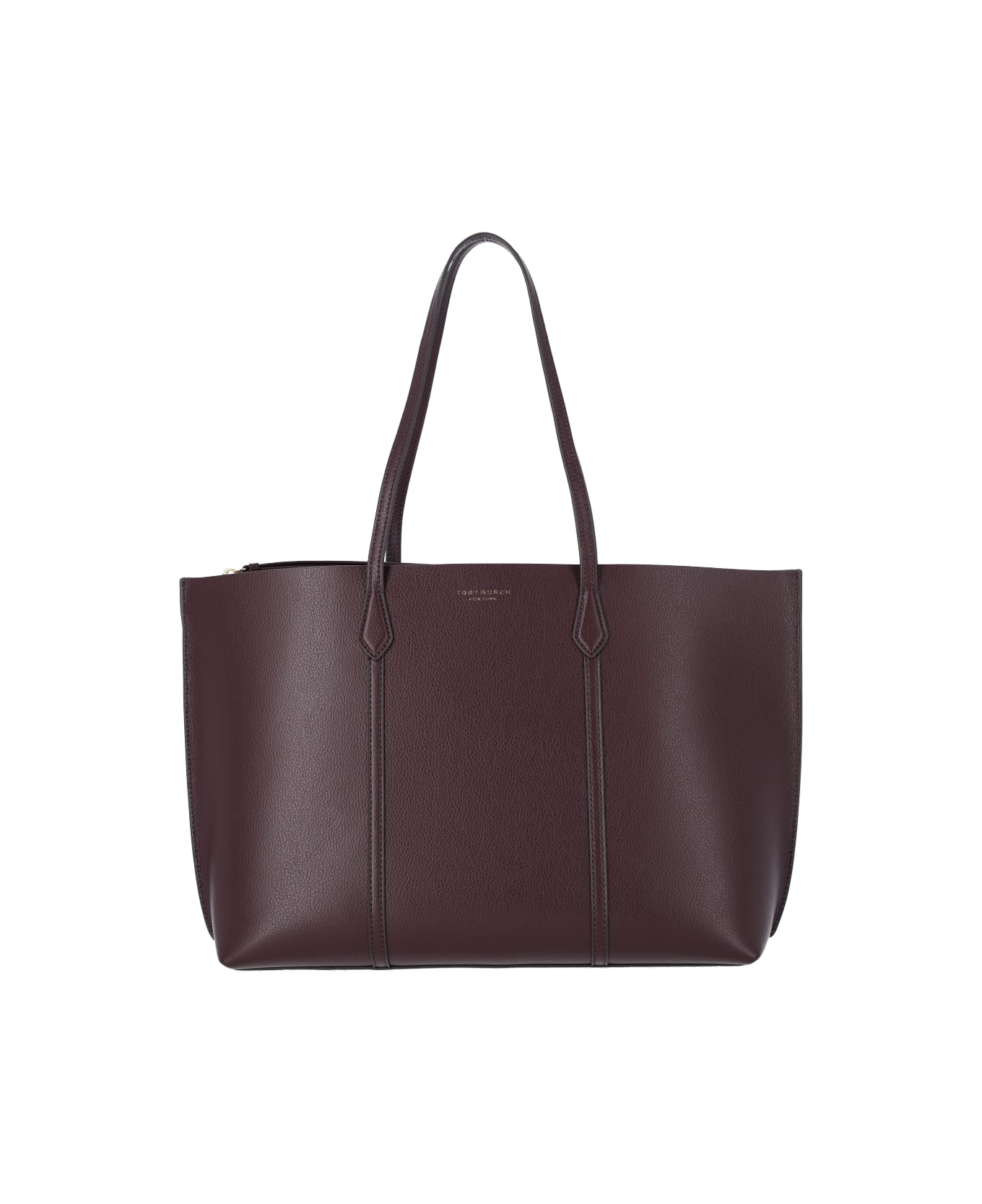 - Tote bag "Perry" Tory Burch in red calfskin - bordeaux shade - two top handles - embossed logo on the front - one internal zip pocket - one removable pocket