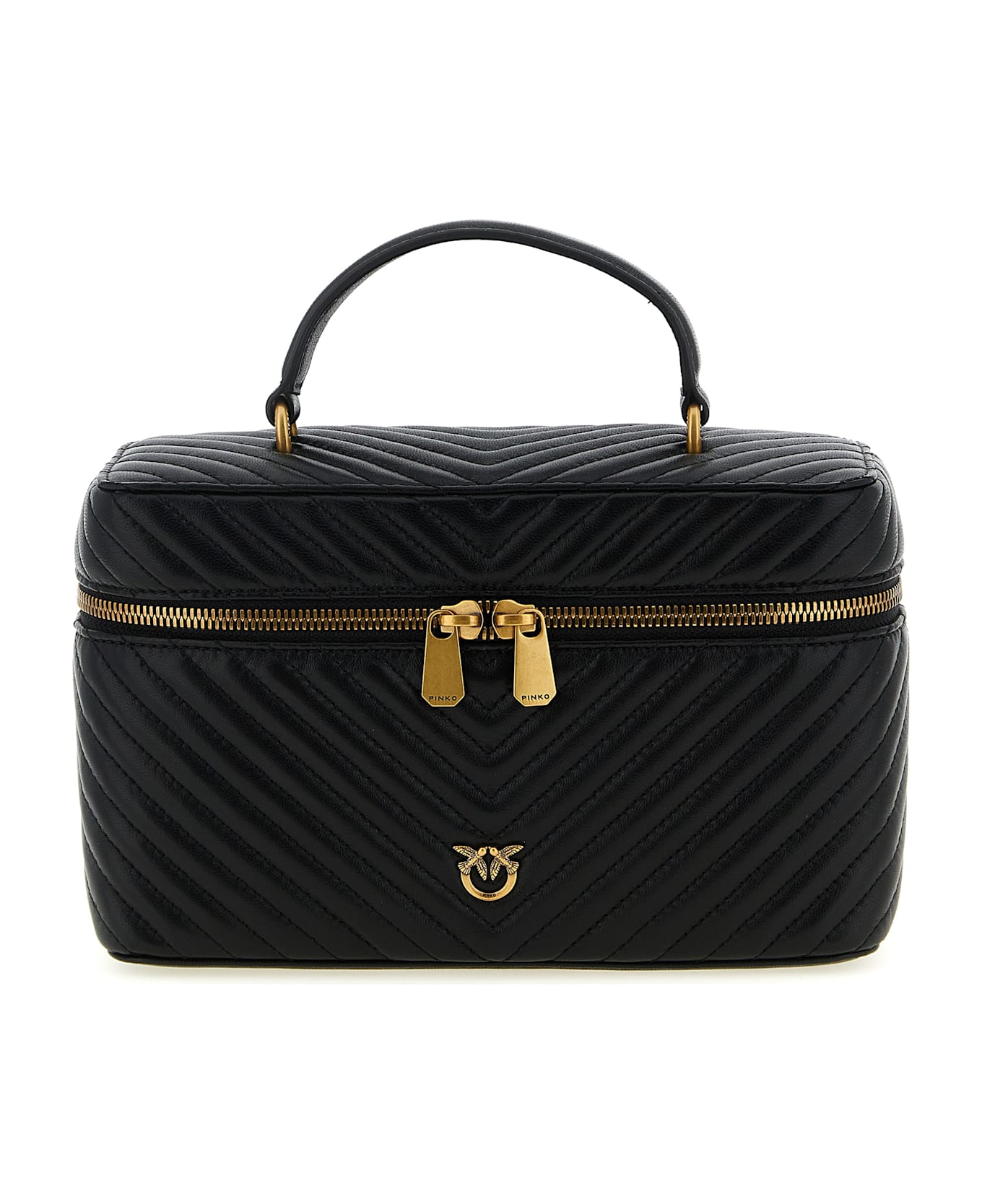 'Vanity Case Classic' quilted nappa leather handbag with chevron pattern, antiqued metal 'Love Birds Diamond Cut' logo on the front, fixed handle, zip closure, hard bottom, adjustable and removable shoulder strap.