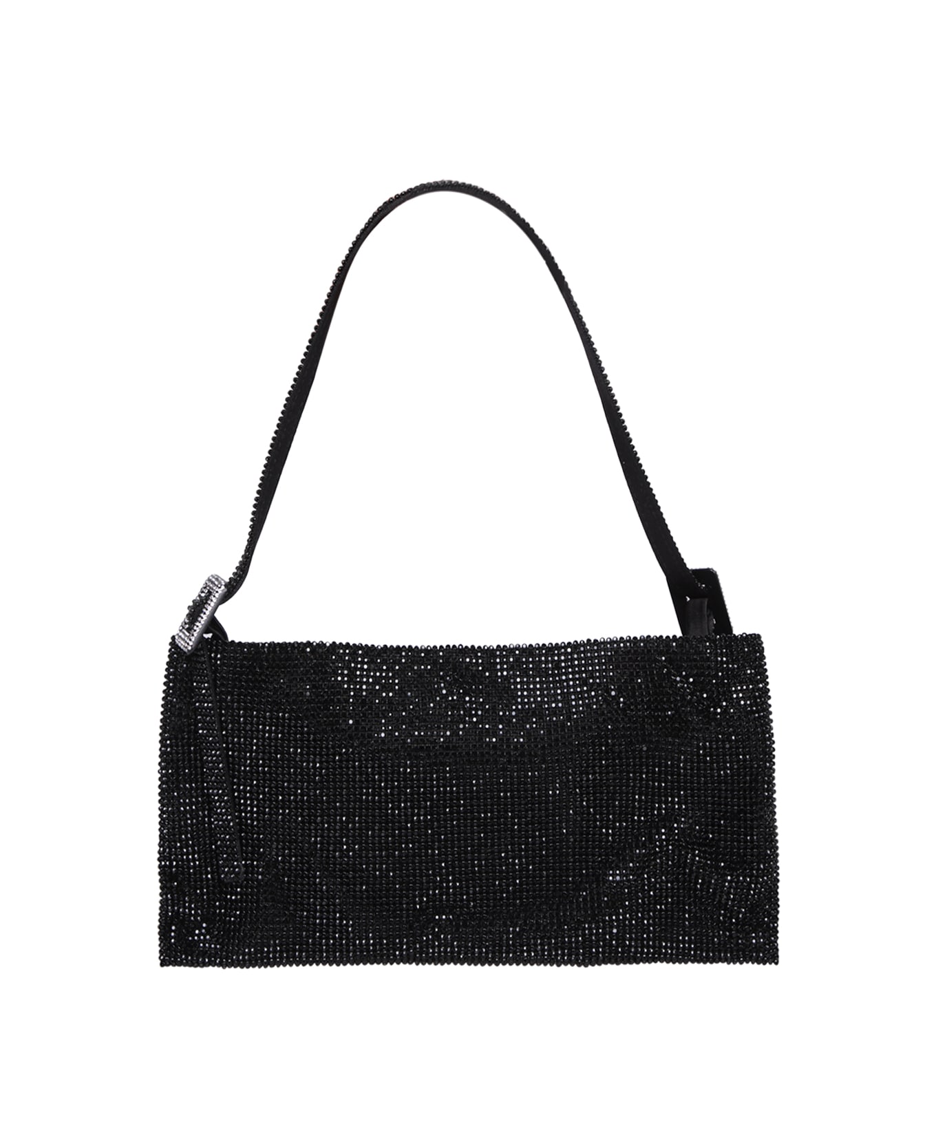 Top single handle. Adjusable handle. Top zip fastening. Main compartment. Internal slip pockets. Crystal embellishment. Color: black
