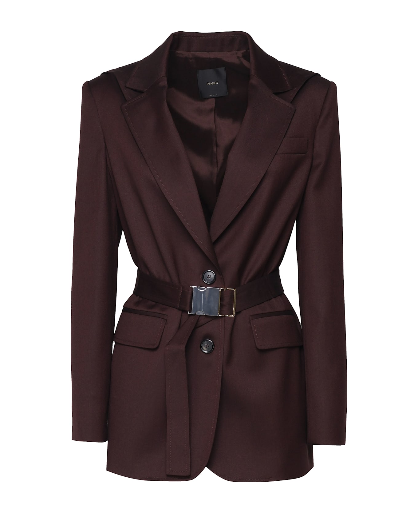 -Flannel jacket -Pointed lapels -Technical belt at the waist -Colour: Bordeaux