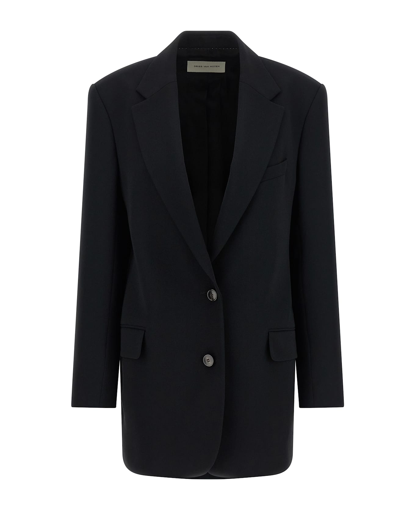 Basti' single-breasted crêpe blazer with two front button closure, mirror lapels, breast pocket, flap pockets, padded shoulders, long sleeves, back vents, viscose lining.