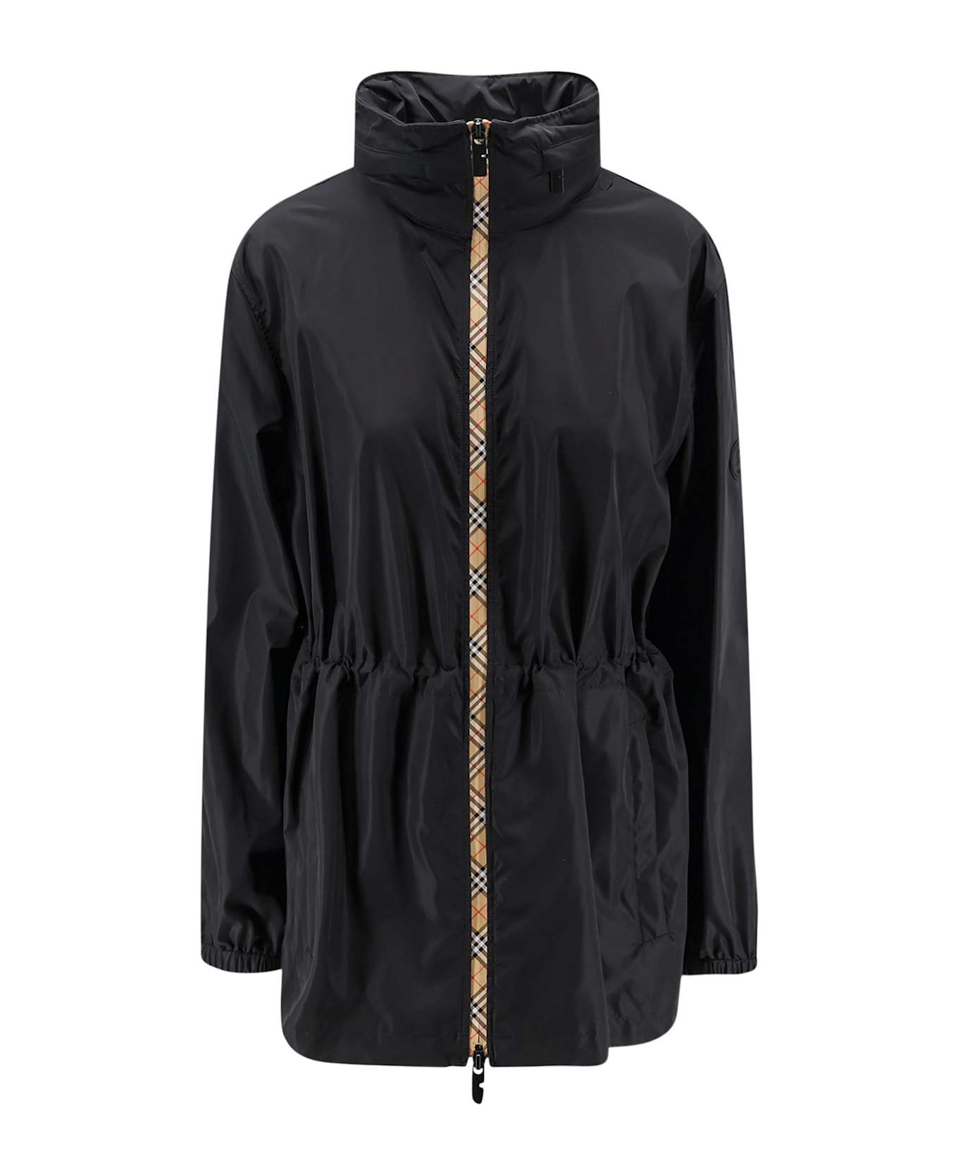 Zip closure with double slider Traditional Check rubberized trim Concealed hood Adjustable drawstring waist EKD patch on the left sleeve Front pockets with hidden zips 50% recycled polyamide 50% polyamide SKU: 8110309A1189
