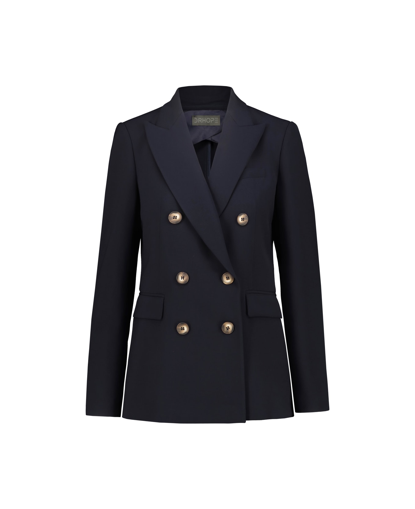 Drhope unlined double-breasted blazer with peak neckline in stretch fabric, horn buttons, side flap pockets, back vent. gtin code: 113069