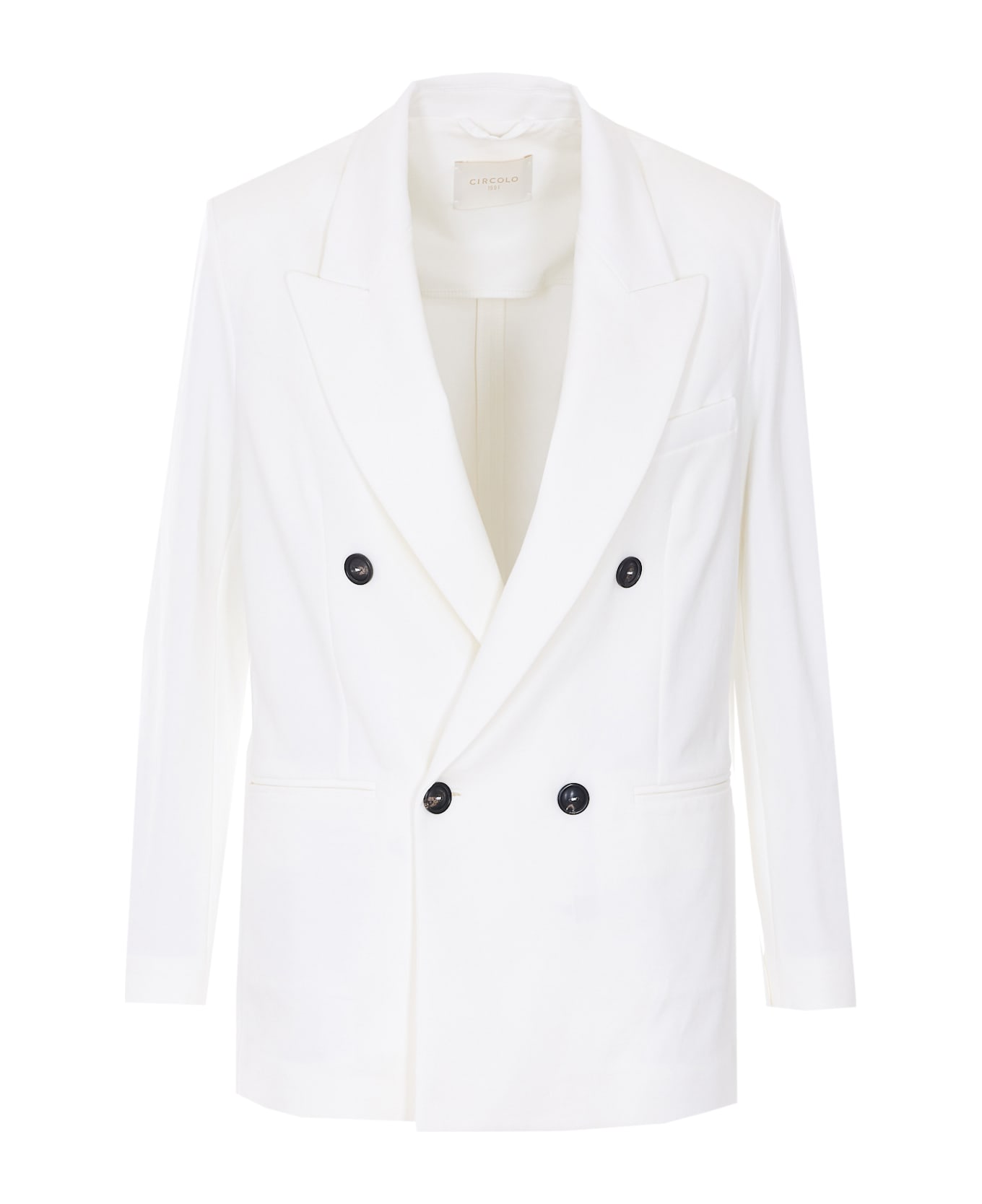 Circolo 1901 white double breasted jacket with frontal double breasted jacket, V-neck, long sleeves, reinforced shoulder, buttons on cuffs