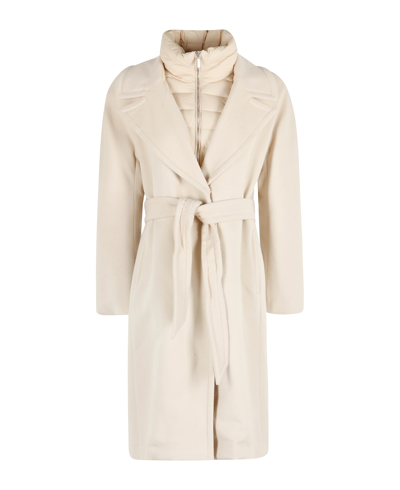 Polina coat - Moorer - Cream color - Wool fabric - Removable down bib - Lapel neckline - Long sleeve - Removable waist belt - Front button closure.