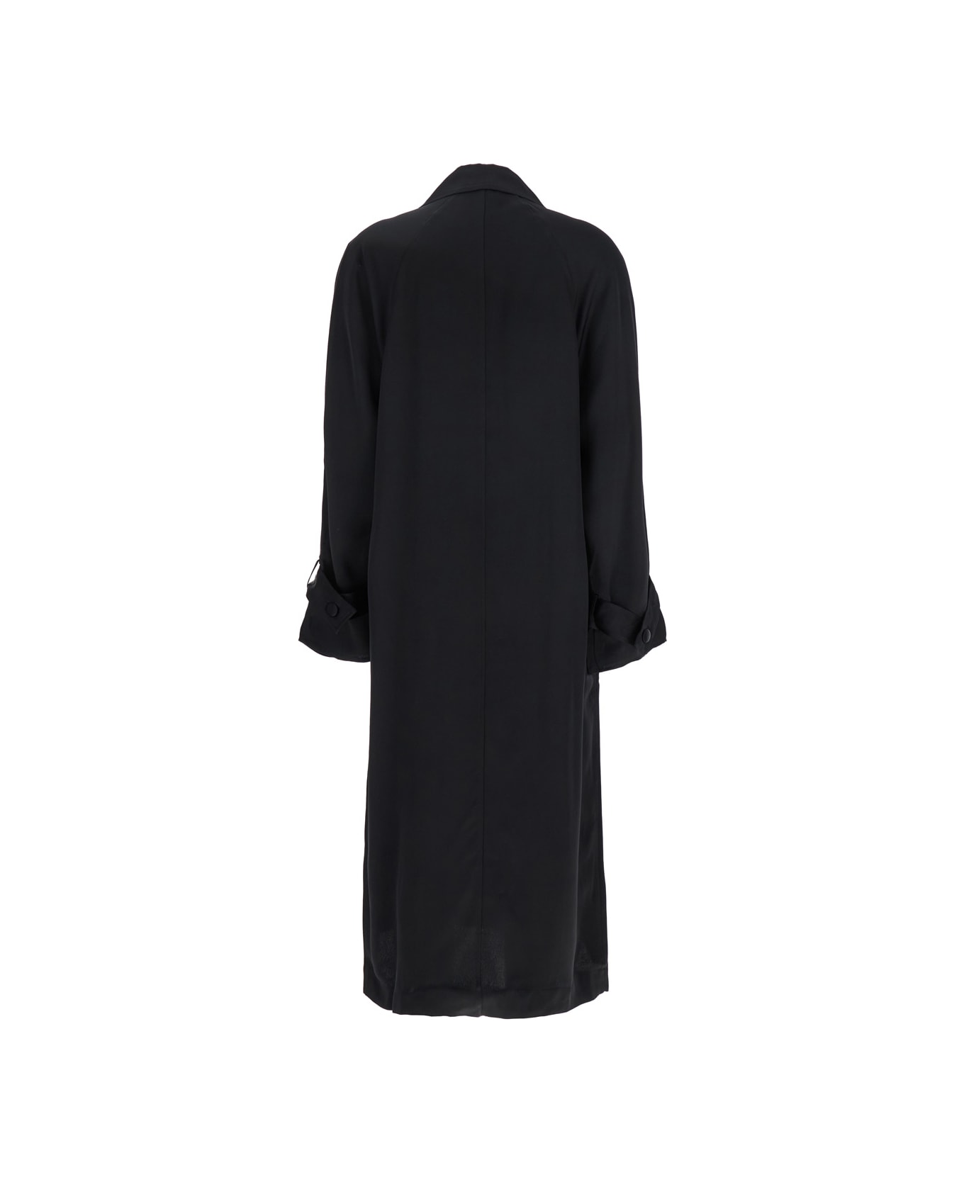 Double-breasted trench Black Notch lapels Long sleeves Drop shoulders Front button closure Cuffs with strap and button Straight hem Viscose blend Loose fit
