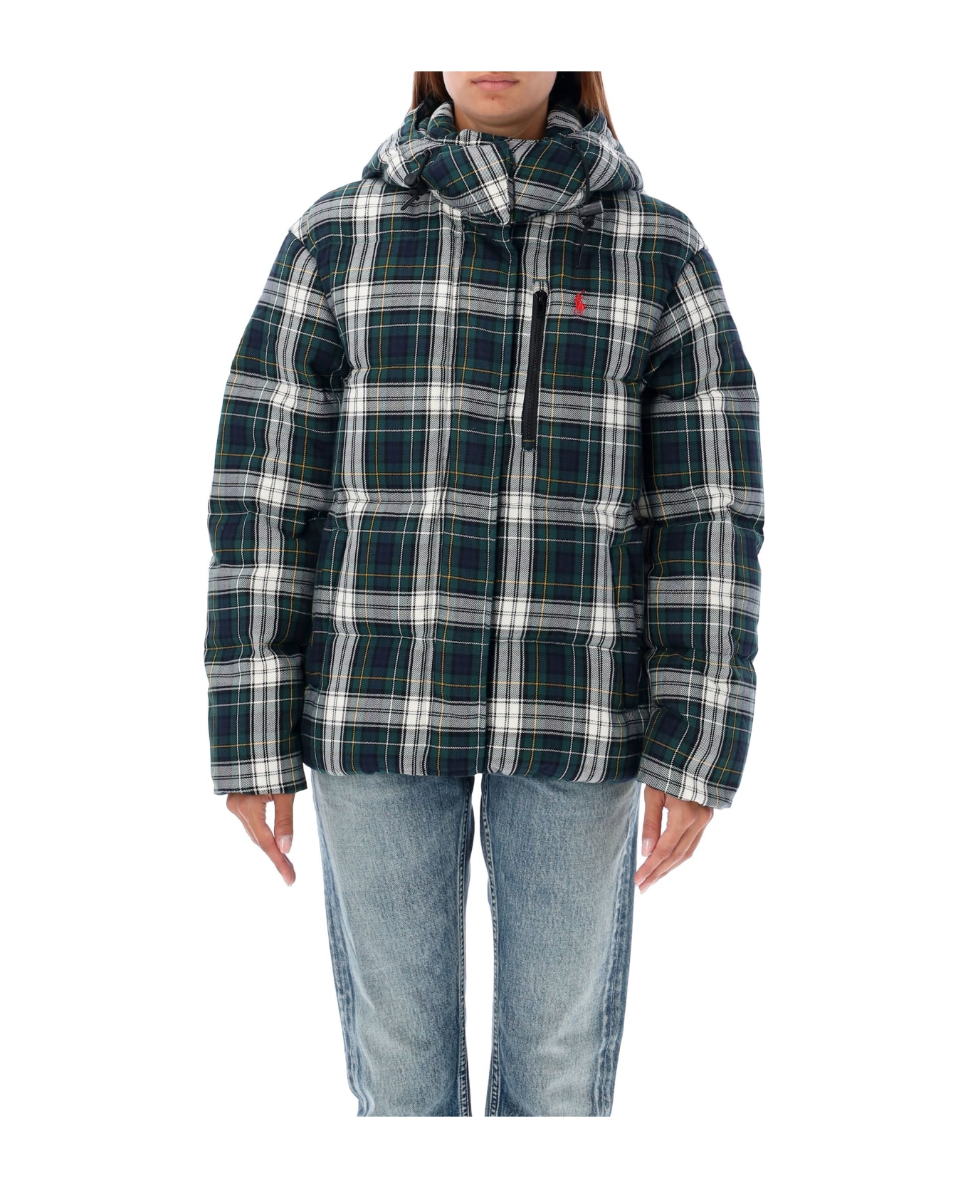 Check Down Jacket By Polo Ralph Lauren. Featuring: Relaxed Fit Crafted From Soft, Durable Fabric High Neck With Adjustable Drawstring Hood Long Sleeves Front Zip Closure Signature Polo Logo Embroidered On The Chest Zippered Chest Pocket And Side Pockets Model Is 1,72 And Wears Size S.