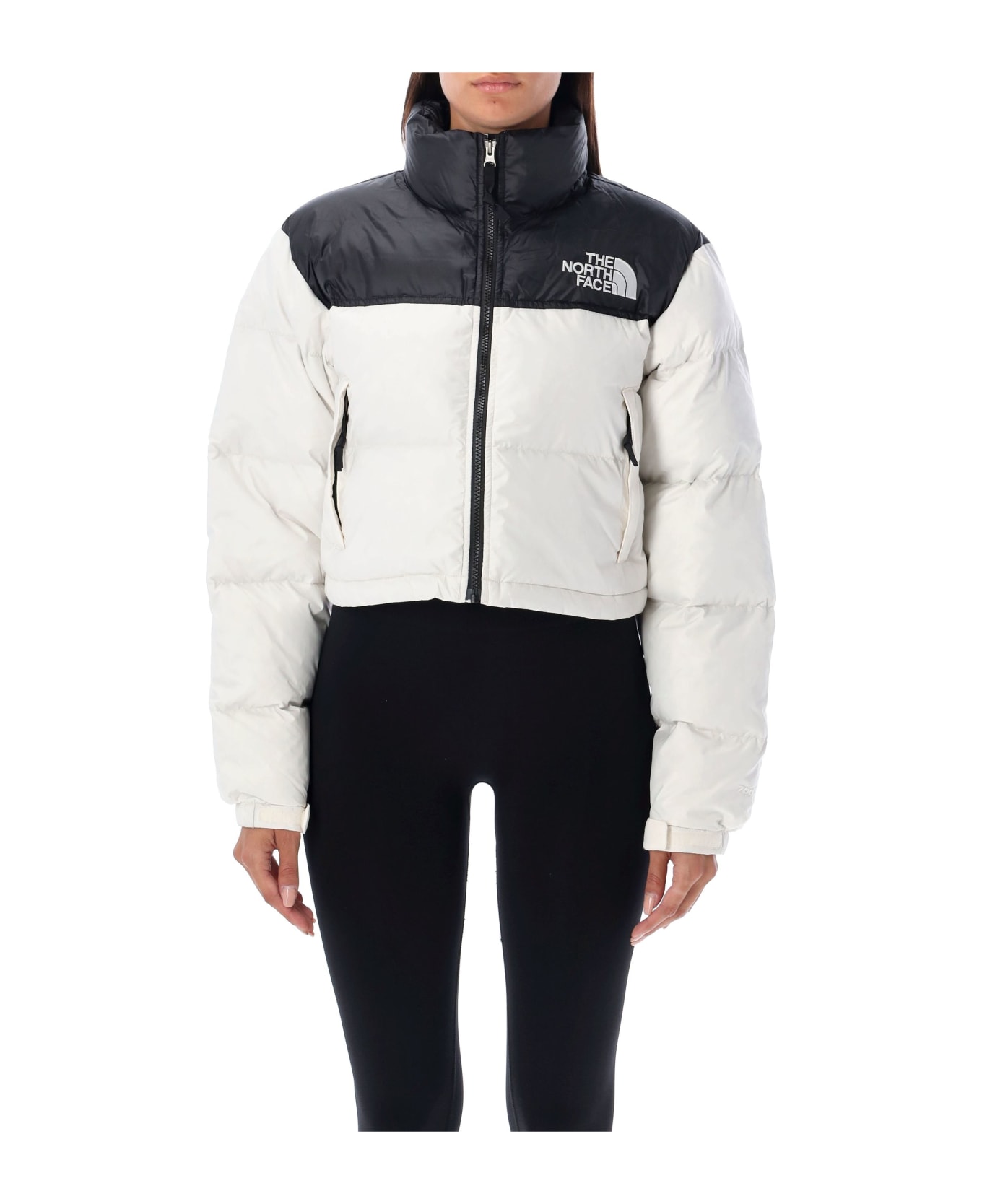 Nuptse Short Jacket By The North Face. Featuring: High Neck Long Sleeves Zip Closure At Front Embroidered Logo At Chest And Back Lateral Zip Pockets Elasticated Cuffs And Hem Adjustable Velcro Straps At Wrists Stitching Details Down-filled Cropped Model Is 1,72 M Tall And She Is Wearing Size Xs
