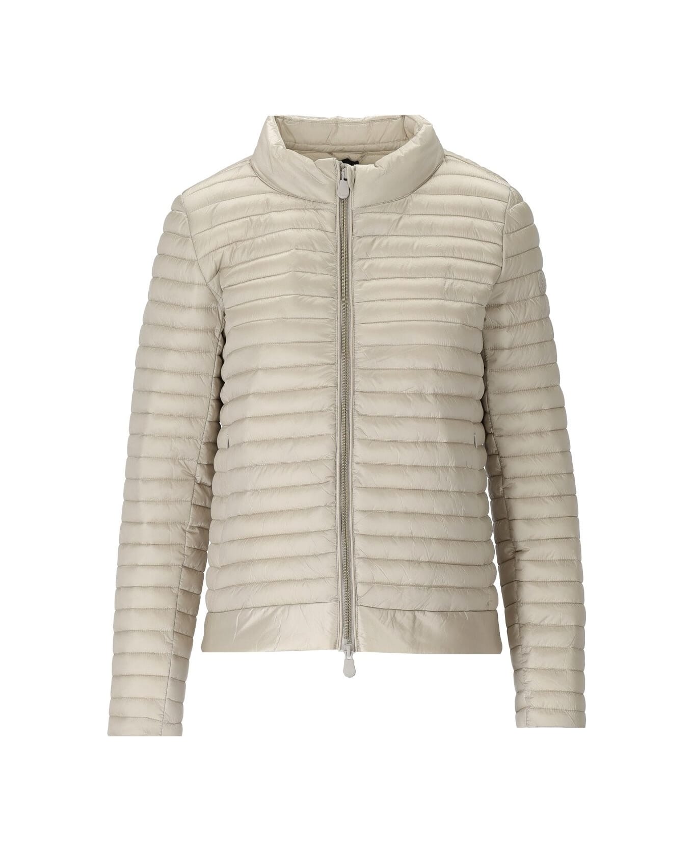 Alyssa padded jacket by Save The Duck made of champagne-colored quilted nylon with animal-free Plumtech padding. Tone-on-tone rubberized logo on the sleeve, hidden pockets on the front and zip closure. Composition: 100% nylon. Filling: 100% polyester.