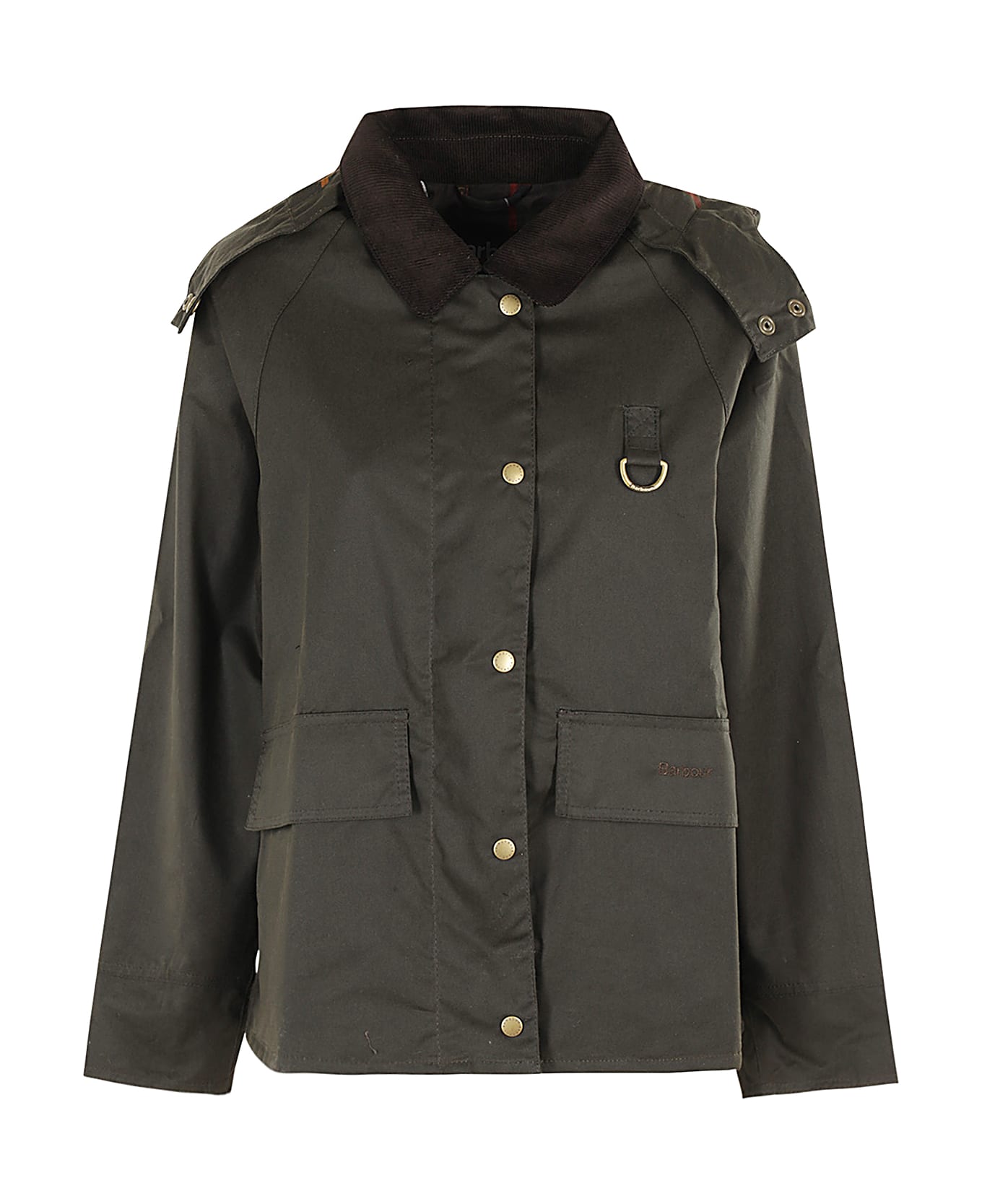 Avon Wax jacket - Barbour - Olive color - Waxed cotton fabric - Velvet collar - Flap side pockets - Front button closure