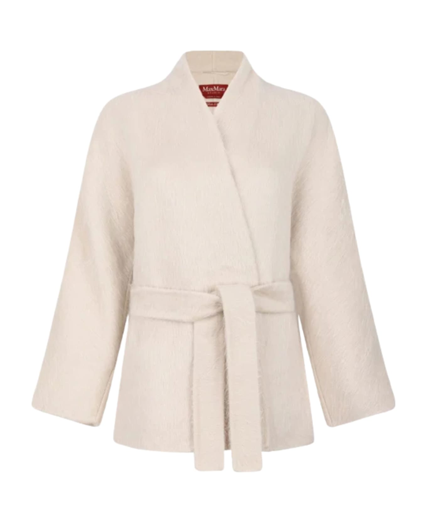 Celti coat by MAX MARA in white wool and alpaca, featuring a short length and a belted waist. Composition: 68% Virgin Wool, 32% Alpaca
