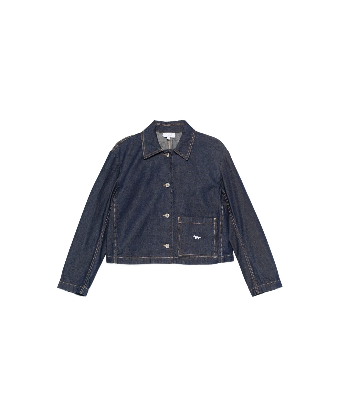 blue cotton signature Fox detail front patch pocket front button fastening long sleeves point collar