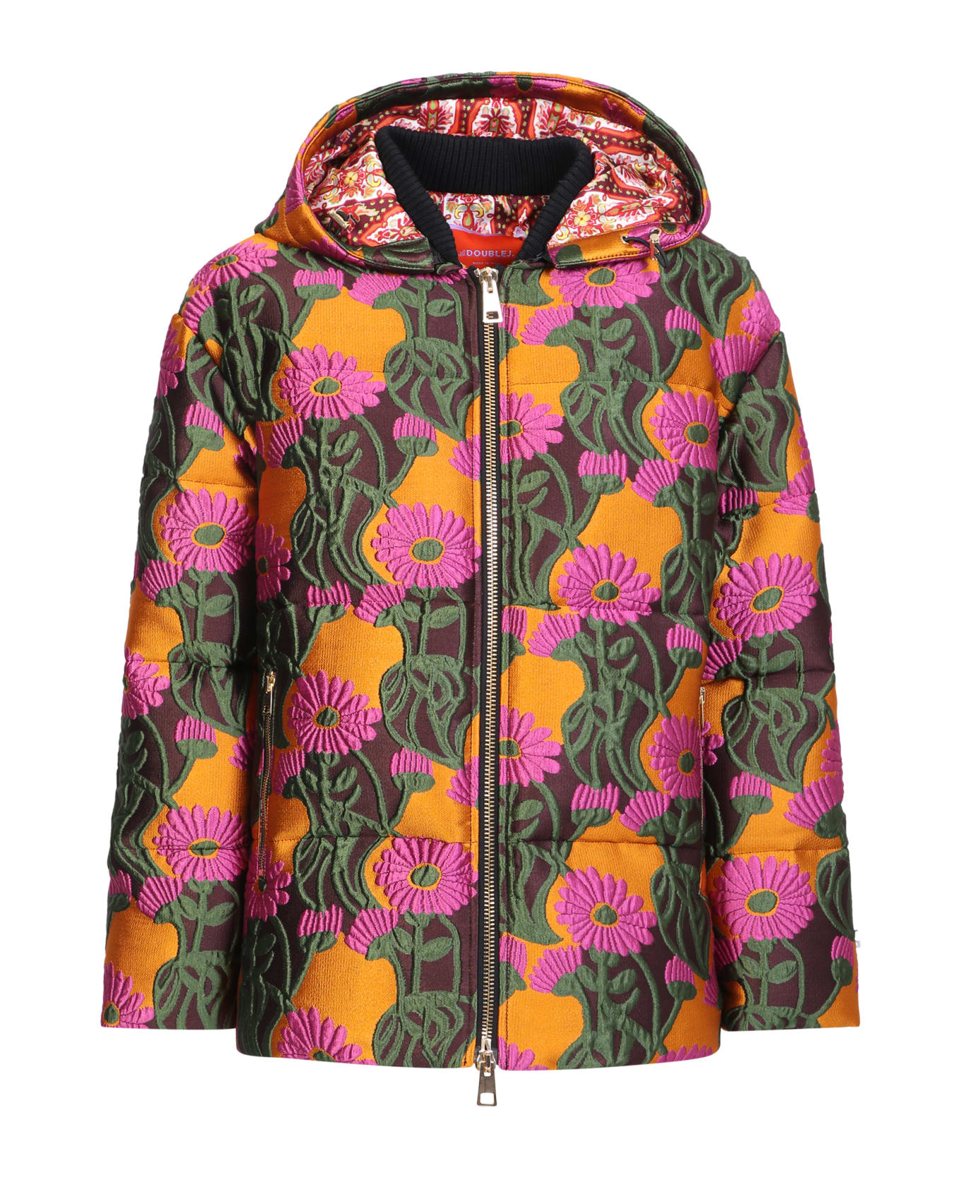 Classic hood. Detachable hood. Fine ribbed band collar. Long sleeves. Front zip fastening. Two zip fastening pockets to the side. All-over botanical print. Patterned jacquard. Padded design. Color: orange/ multicolor