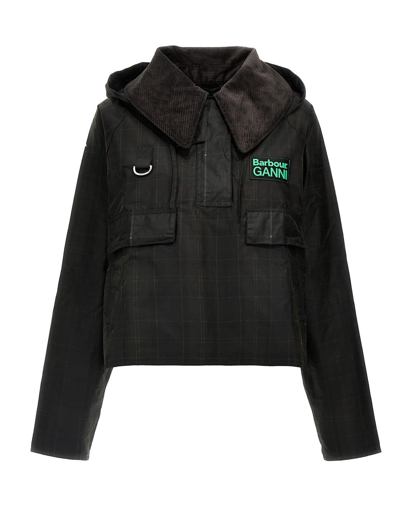 Barbour x Anorak Smock GANNI waxed cotton jacket with check print, front logo patch, corduroy collar, half zip and buttons, pockets, removable hood, long sleeves with windproof gaiter. SUSTAINABLE: This product is made of organic cotton.