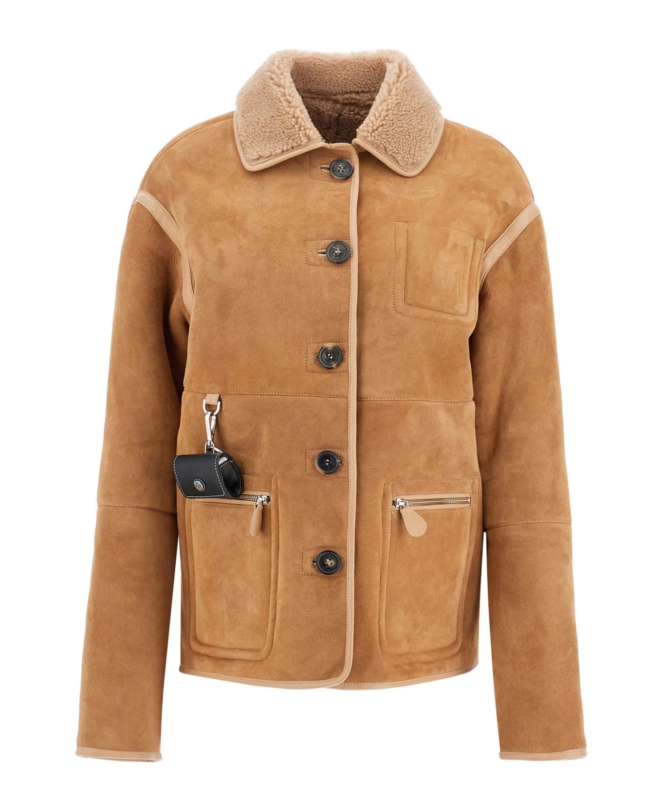 Saks Potts reversible jacket crafted with a side in suede leather and the reverse in soft lamb shearling. It features spread collar, front button fastening, patch pockets, two of which with zipper. Provided with AirPods case with clasp. Oversized fit with dropped shoulders. The model is 177 cm tall and wears size XS.