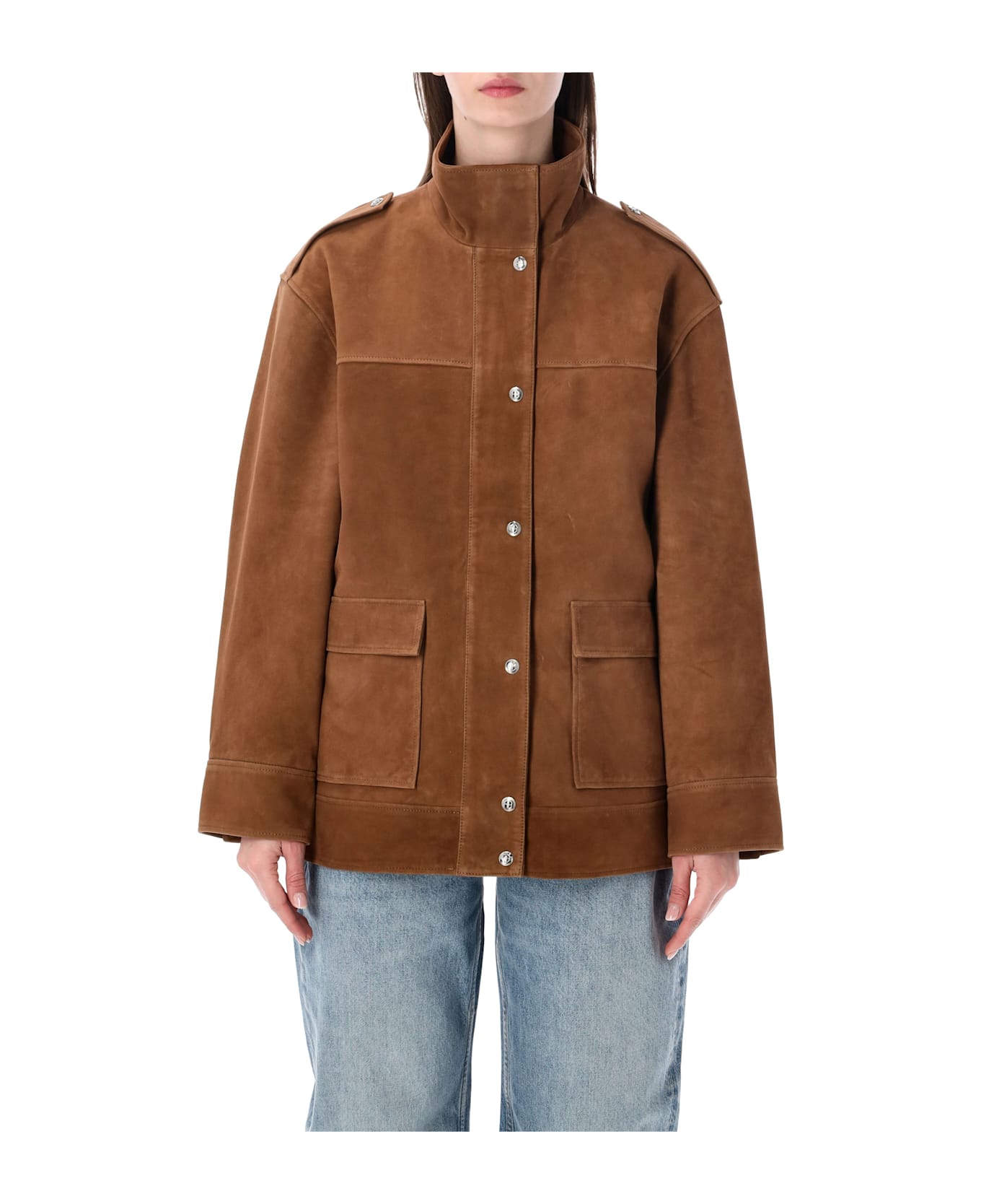 The Anine Bing Roux Jacket Is A Streamlined High-neck Design In Luxurious Suede. Featuring A Stand-up Collar, Two Large Front Patch Pockets, And Zip-and-button Closure, It Combines Structured Sophistication With Modern Edge For Versatile Layering
