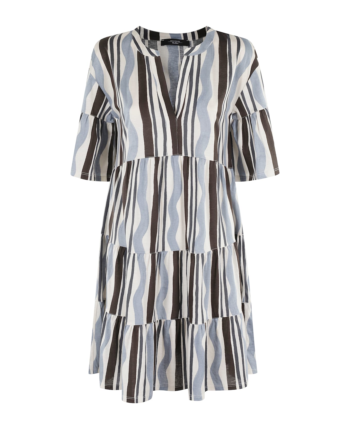 Ely dress - Weekend Max Mara - Multi light blue color - Striped patterned jersey fabric - V-neck - Short sleeve with dropped shoulder and ruffles - Flounced skirt - Loose fit