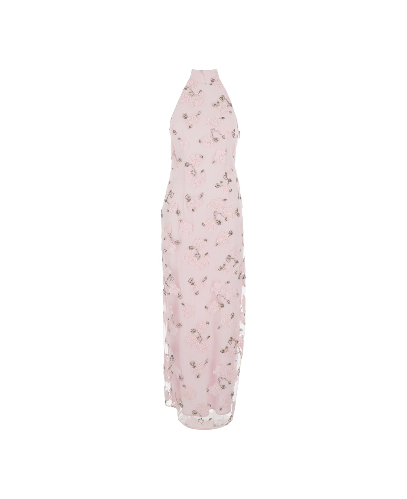 Long dress Pink High neck Sleeveless Open back All-over beaded floral application Ankle-length Fabric Regular fit