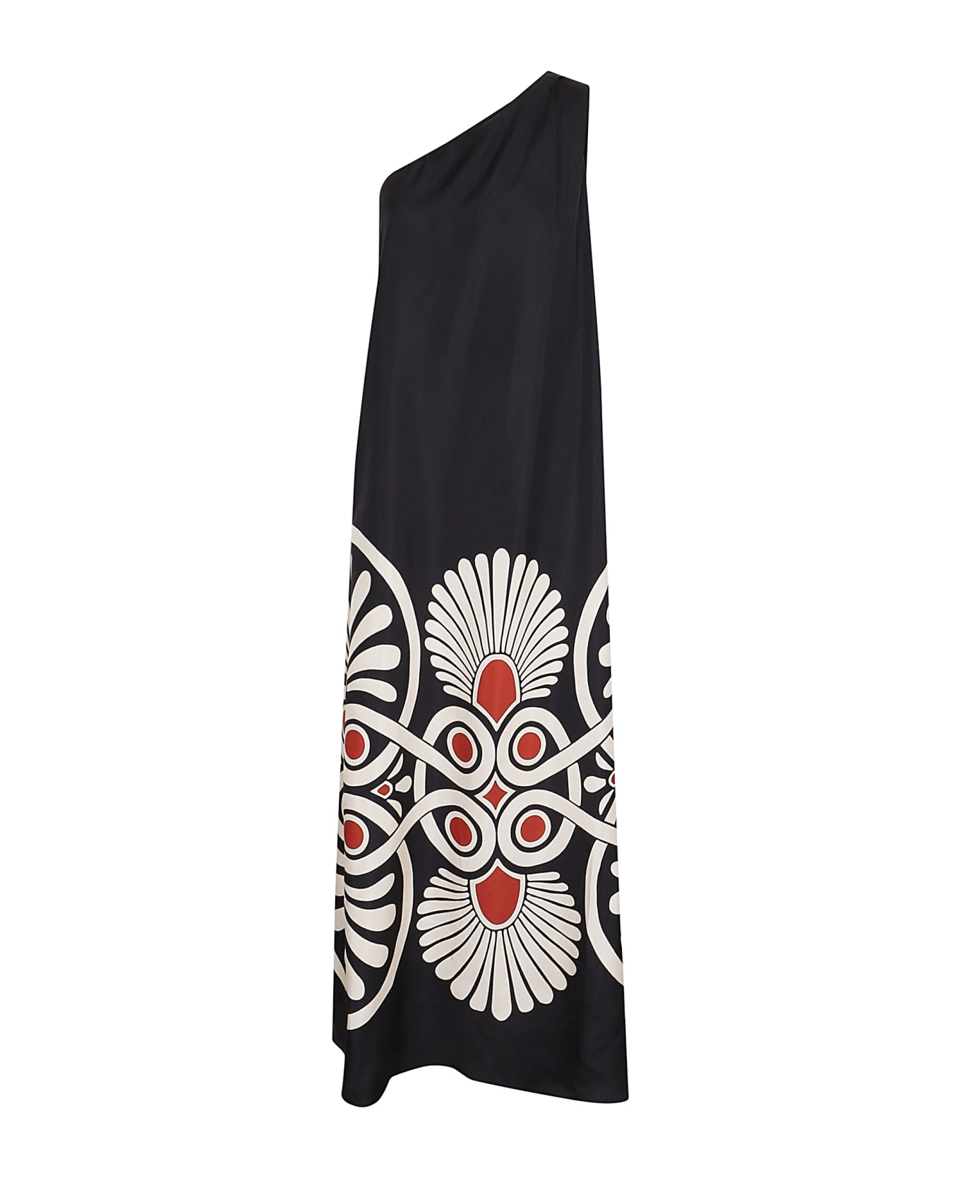 Roy Dress in silk twill BY LA DOUBLEJ. One Shoulder; hidden side zip; pockets. Loose fit design, maxi length. Embellished with a hand-applied pattern.
