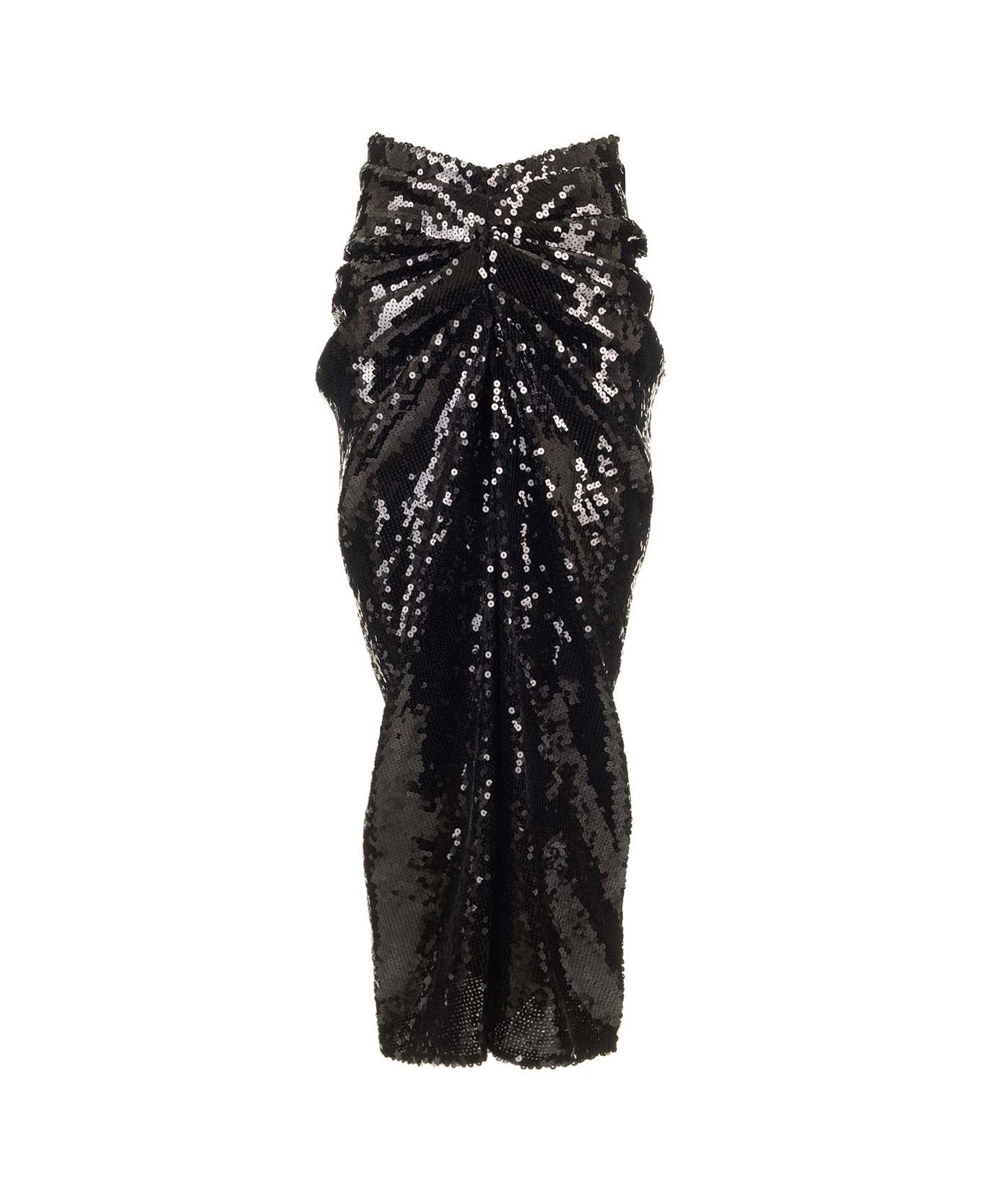 Sequins embellished midi skirt from Del Core, with column fit, gathered front and back, invisible zip.