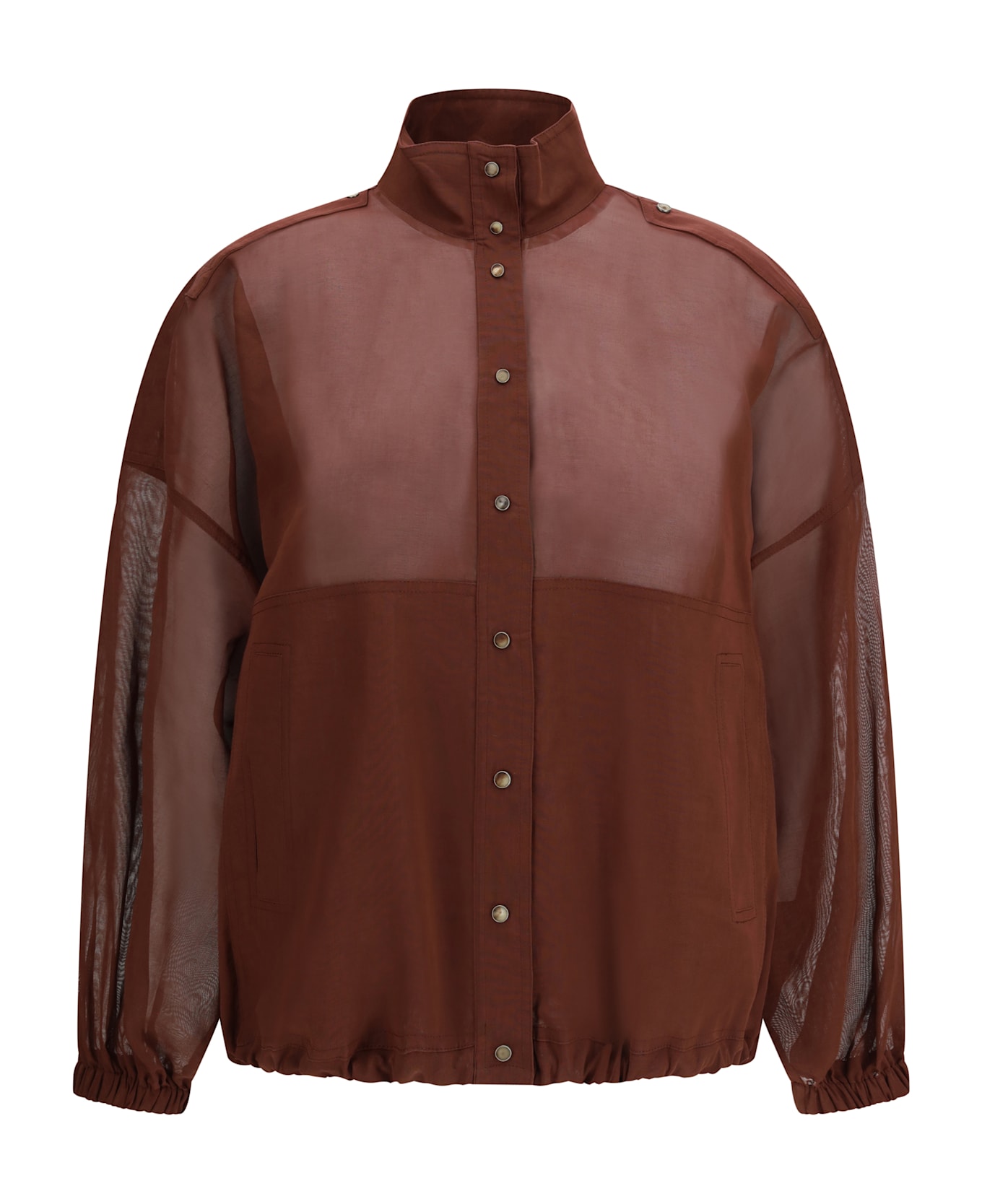 The cotton organza shirt by brunello cuccinelli reflects a refined balance between lightness and functionality. designed with snap-button closure and a stand collar, it features buttoned shoulder tabs that enhance its clean yet distinctive structure. elasticated cuffs and vertical lower pockets add practical appeal, while the unlined construction and drawstring hem complete the piece with a modern and versatile attitude. Composition: 100% % Cotton