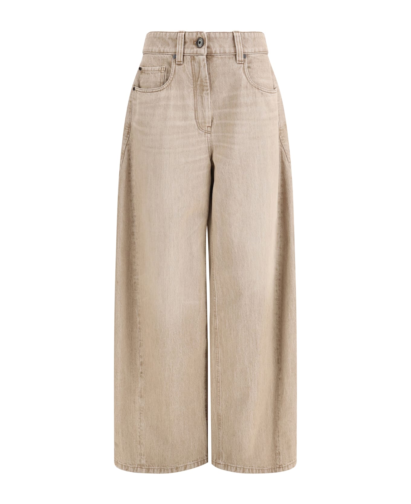 The barrel-leg jeans by brunello cucinelli reinterpret classic denim through the brand s refined, understated aesthetic. crafted with a sculptural barrel silhouette, they feature a traditional five-pocket construction, belt loops, and contrast stitching that enhances the clean lines of the design. a front button fastening completes this elevated everyday essential, blending casual attitude with meticulous craftsmanship.