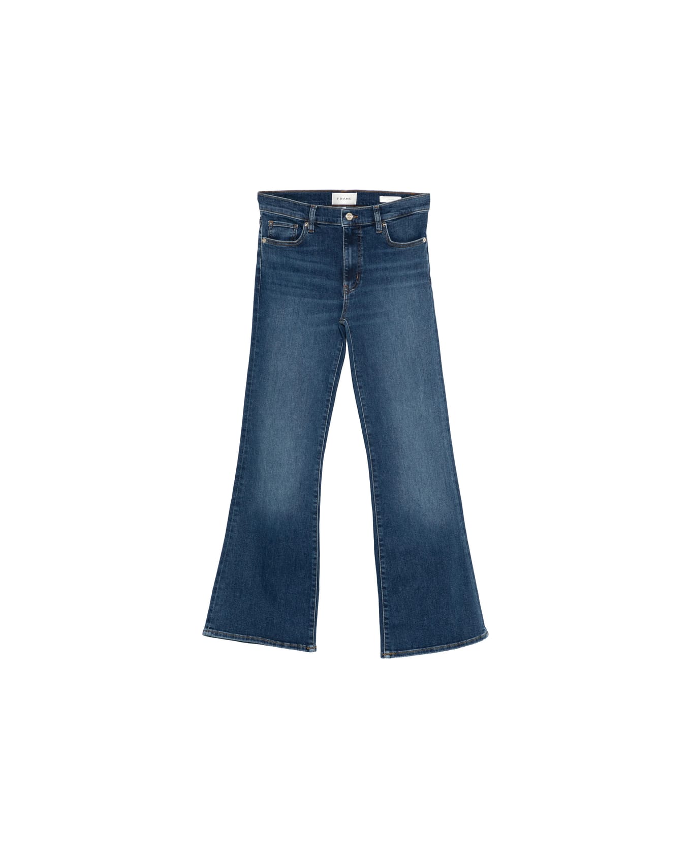 blue five pockets belt loops topstitching flared leg silver-tone hardware