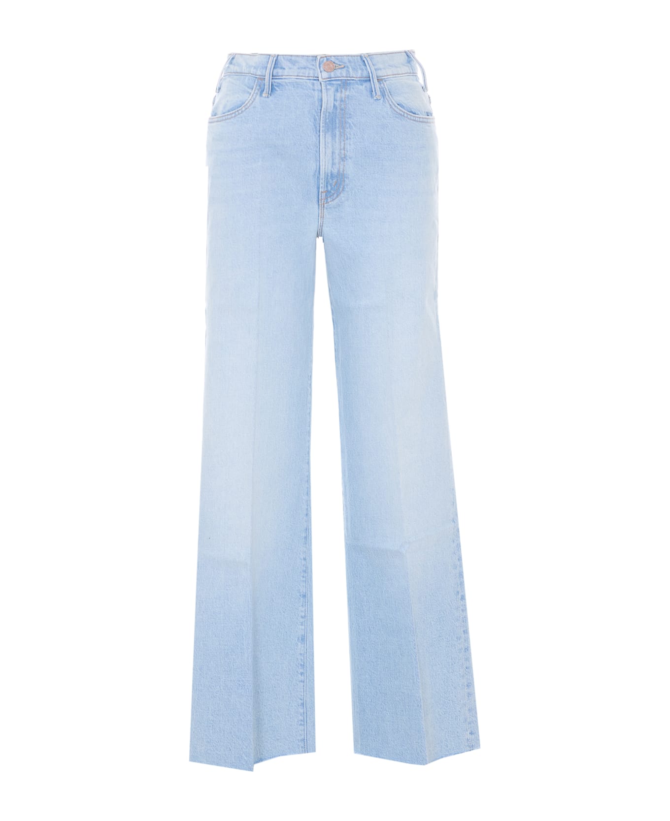 Mother light blue The Hustler Roller jeans, zip and buttons closure, straight fit, gradient effect Composition: 77% Cotton, 22% Lyocell, 1% Elastane