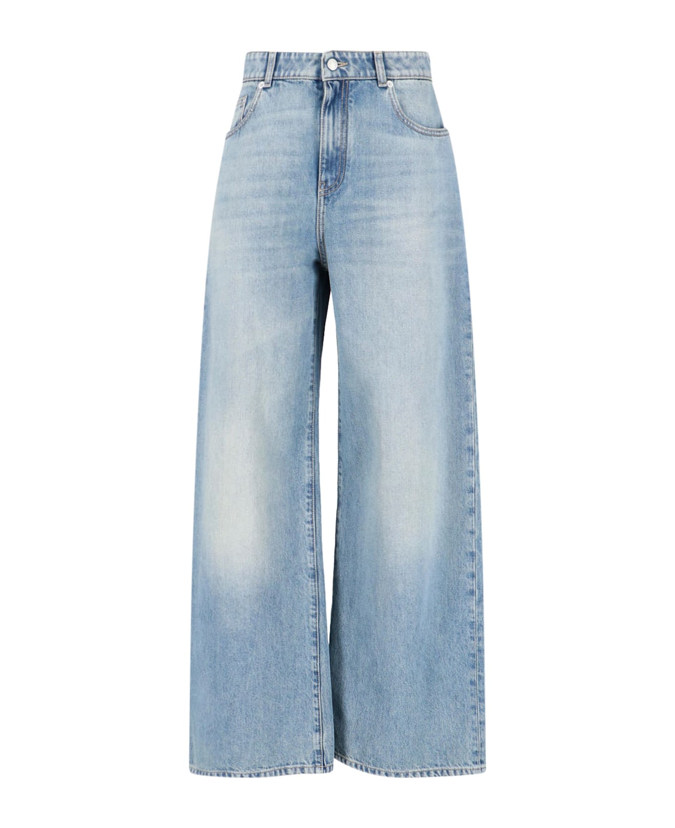 Alexander McQueen wide jeans in blue cotton denim with mid waist, button and zip closure, five pockets, logo patch on the back, wide leg. Composition: 100% Cotton