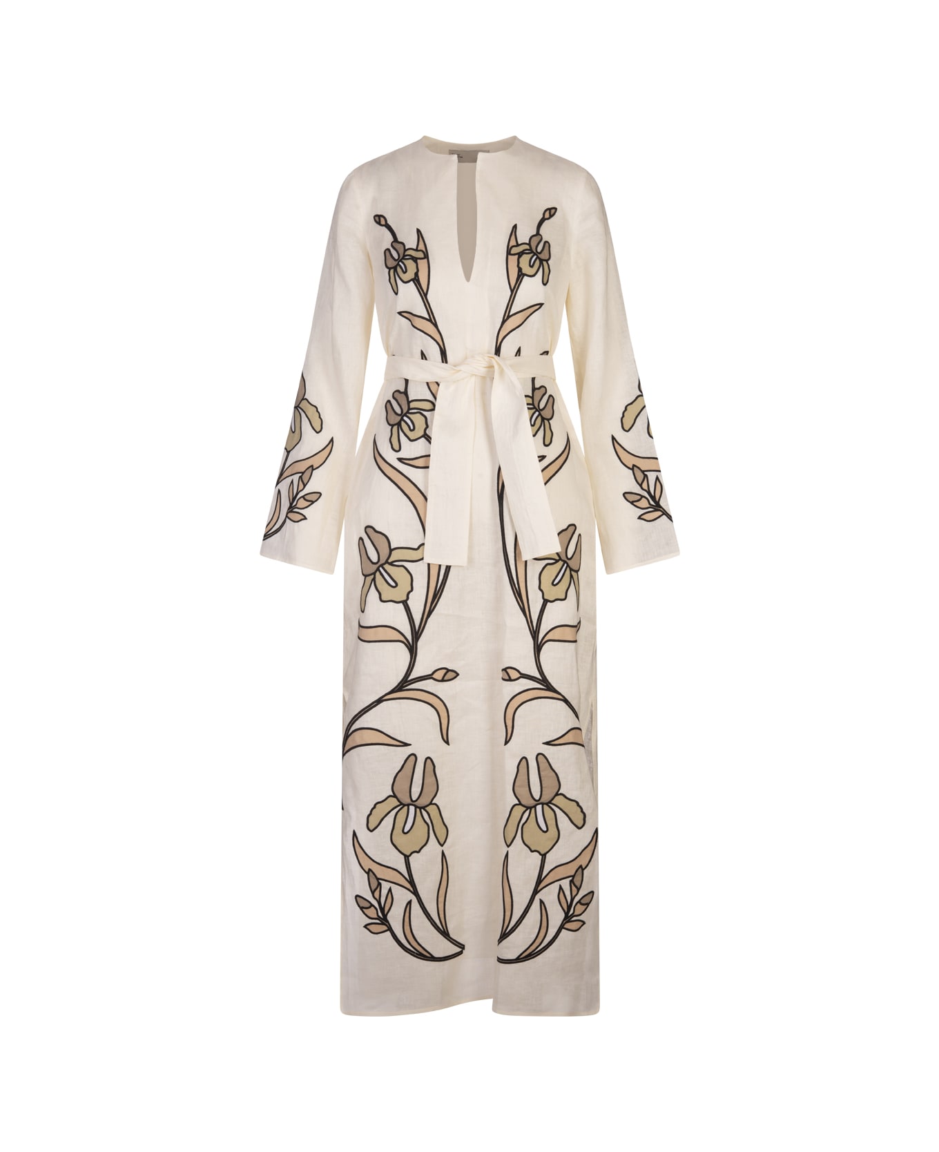 White Linen Caftan With Applications